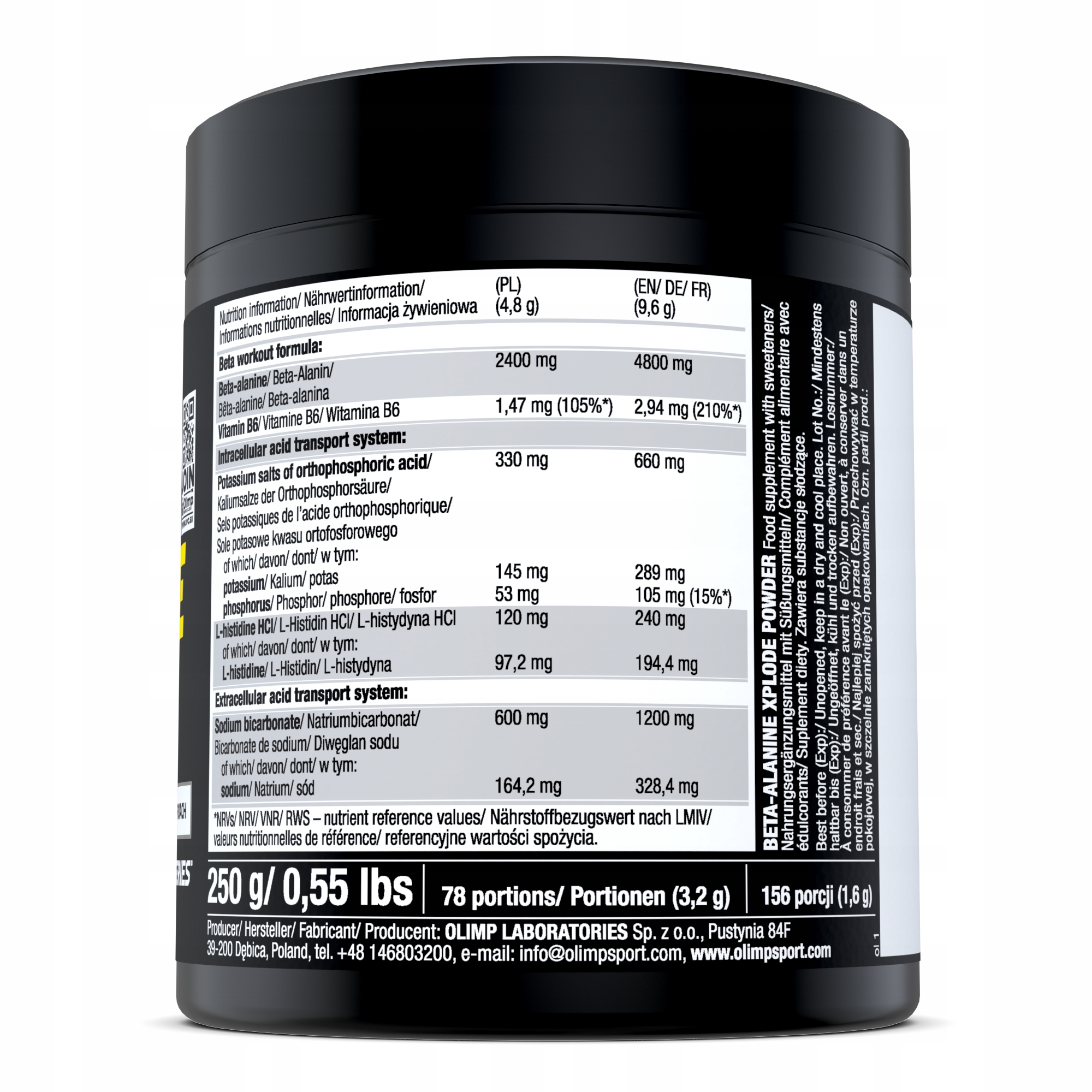 BETA-ALANINE XPLODE POWDERПорошковая пищевая добавка, содержащая бета-аланин, витамин B6, L-гистидин и натрий. Содержит подсластители.