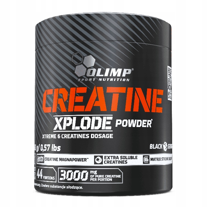 Исследования подтверждают, что прием 3 г креатина в день позволяет заметить положительные эффекты в виде повышения физической работоспособности в случае последующих коротких, очень интенсивных упражнений. Каждая порция (5,8 г = ½ мерной ложки) Olimp Creatine Xplode Powder® помогает обеспечить вышеупомянутые 3 г креатина, поэтому добавляйте один из самых продаваемых продуктов Olimp Sport Nutrition. , не только способствует правильному насыщению мышц этим чрезвычайно популярным ингредиентом, но, прежде всего, оказывает реальное влияние на физическую работоспособность, облегчая работу над фигурой вашей мечты.