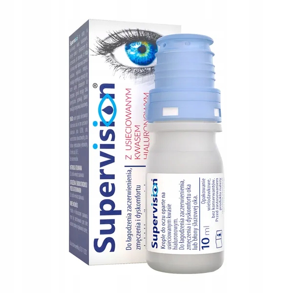 Супервиз – медицинское изделие в виде глазных капель на основе сшитой гиалуроновой кислоты, стерильного раствора с физиологическим pH, предназначенное для применения в глазах. Сшитая гиалуроновая кислота придает продукту смазочные, увлажняющие и регенерирующие свойства, принося облегчение сухим, раздраженным или уставшим глазам. Сшивающий агент работает синергетически, улучшая увлажняющий эффект самой гиалуроновой кислоты.
