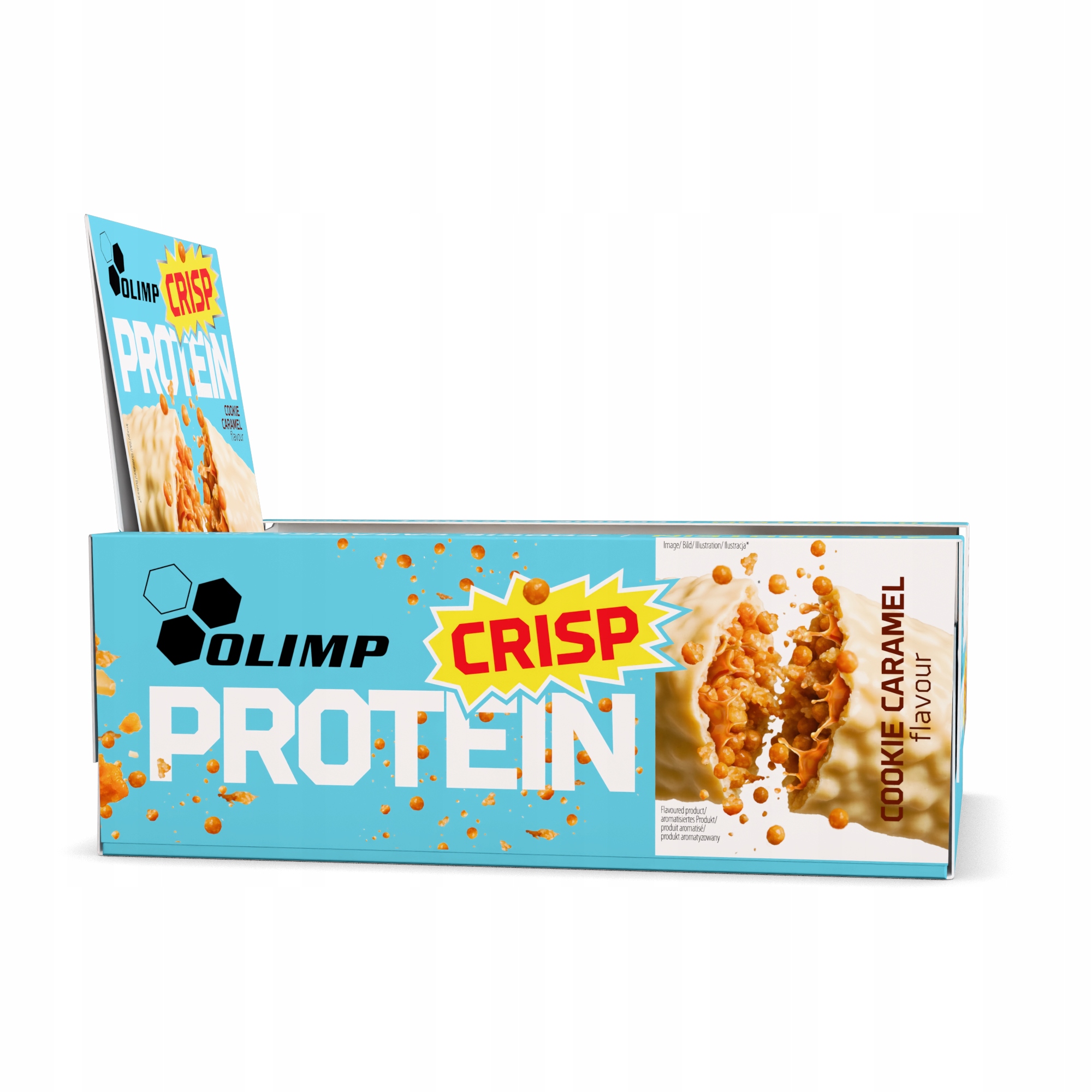 OLIMP PROTEIN CRISP - белковый (20% протеина), хрустящий батончик со вкусом печенья и карамели, покрытый белым шоколадом. Белок способствует росту и поддержанию мышечной массы.