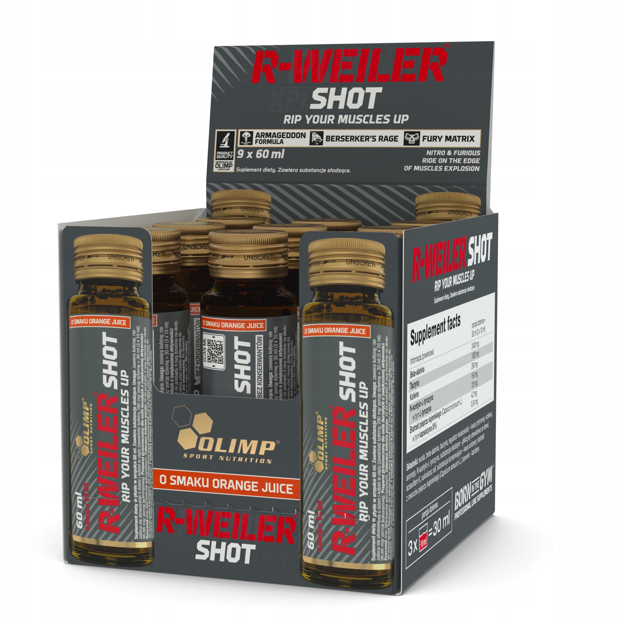 OLIMP R-WEILER SHOT 9X60 мл ДИСПЛЕЙ ПЕРЕД ТРЕНУВАННЯМ КОФЕЇН ПЕРЕД ТРЕНУВАННЯМ