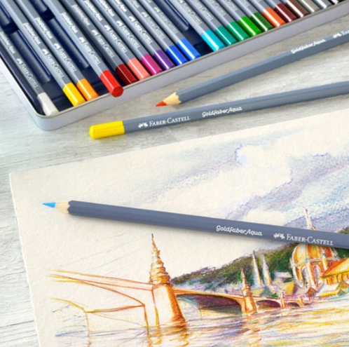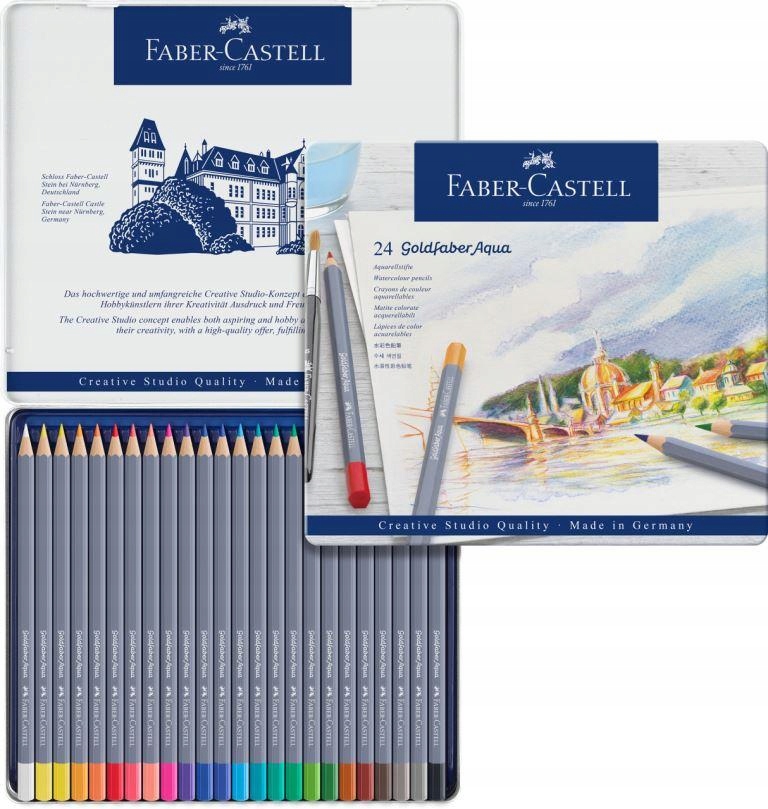 Акварельные карандаши Goldfaber Aqua Faber-Castell, 24 шт в металлической упаковке.