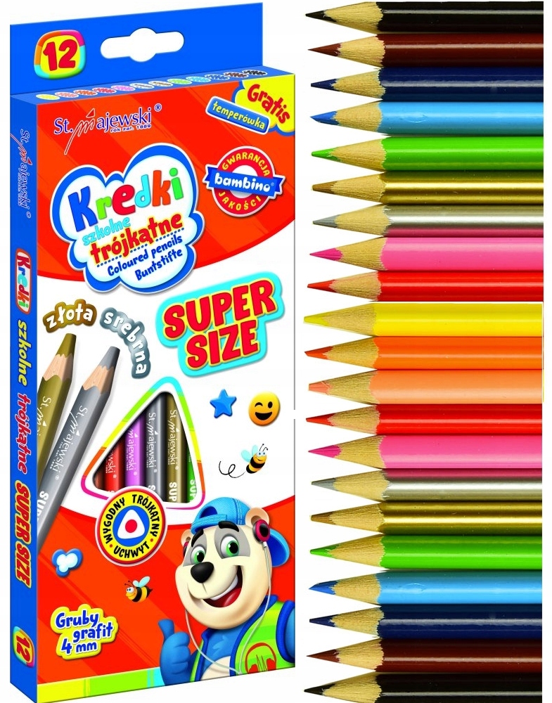 КАРАНДАШ ТРЕУГОЛЬНЫЙ BAMBINO 12 ЦВЕТОВ ТОЛЩИЙ ГРАФИТ + ТОЧИЛКА