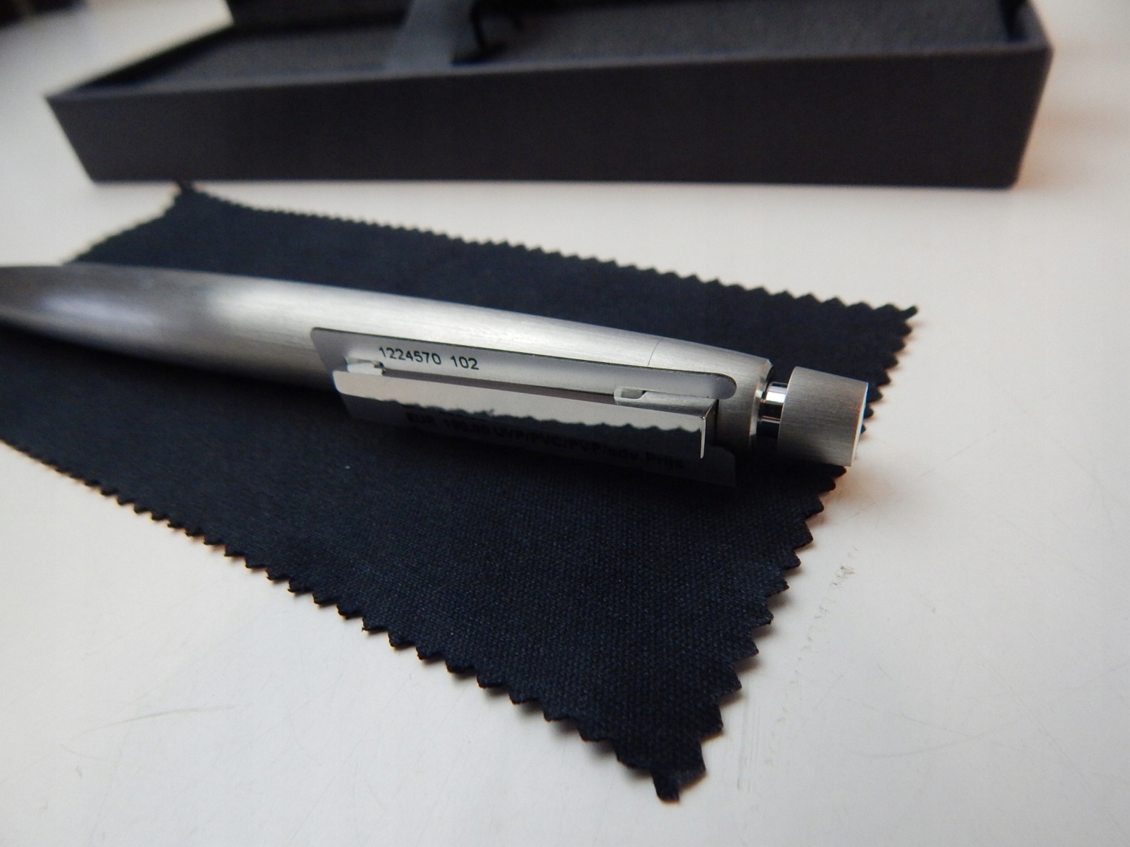 - Карандаш подкупает своим современным и вневременной дизайн. В комплекте идет подарочный футляр. Ластик расположен с дополнительной иглой для чистки под съемной кнопкой.