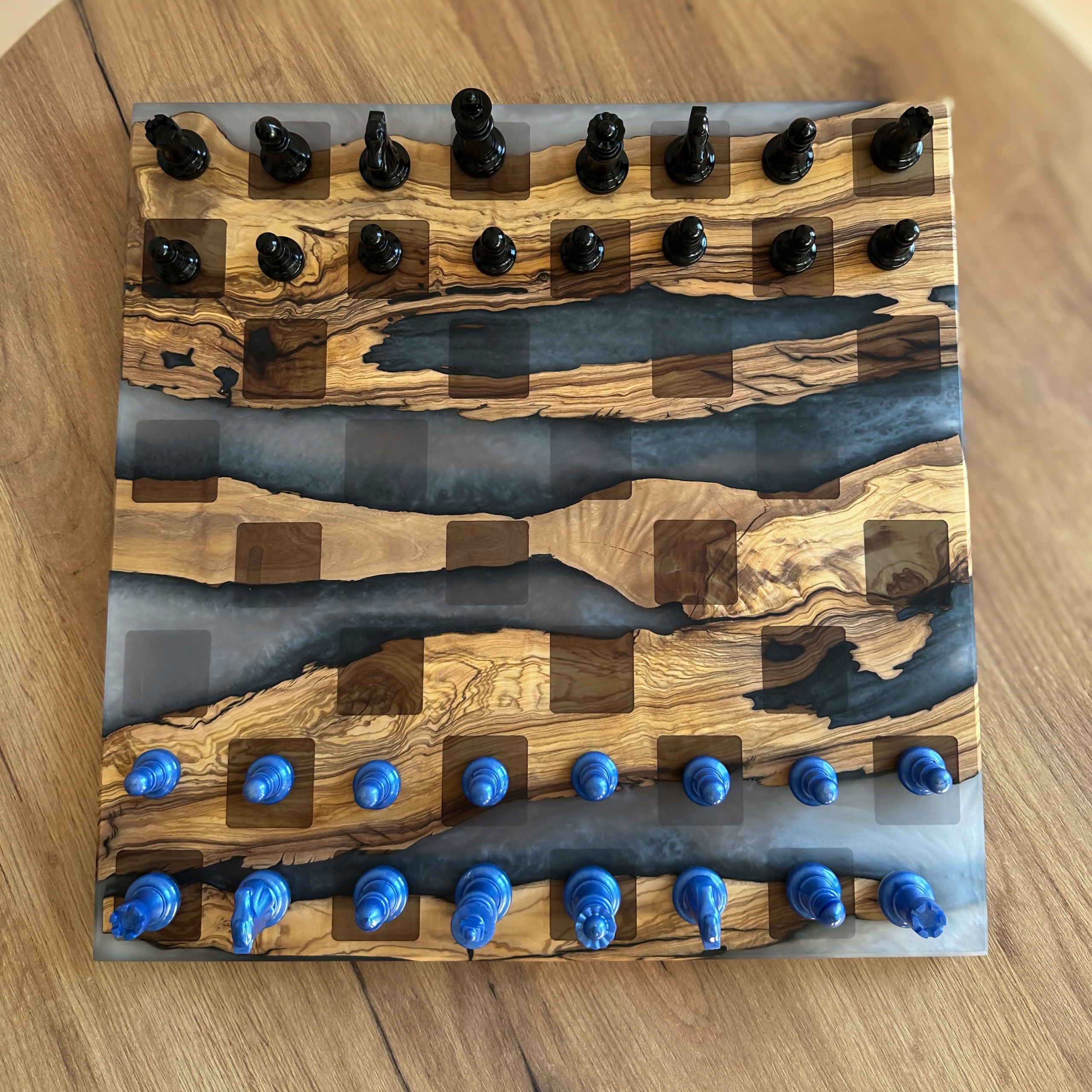 Оливковая деревянная и эпоксидная шахматная доска, подарок, шахматы 32 см