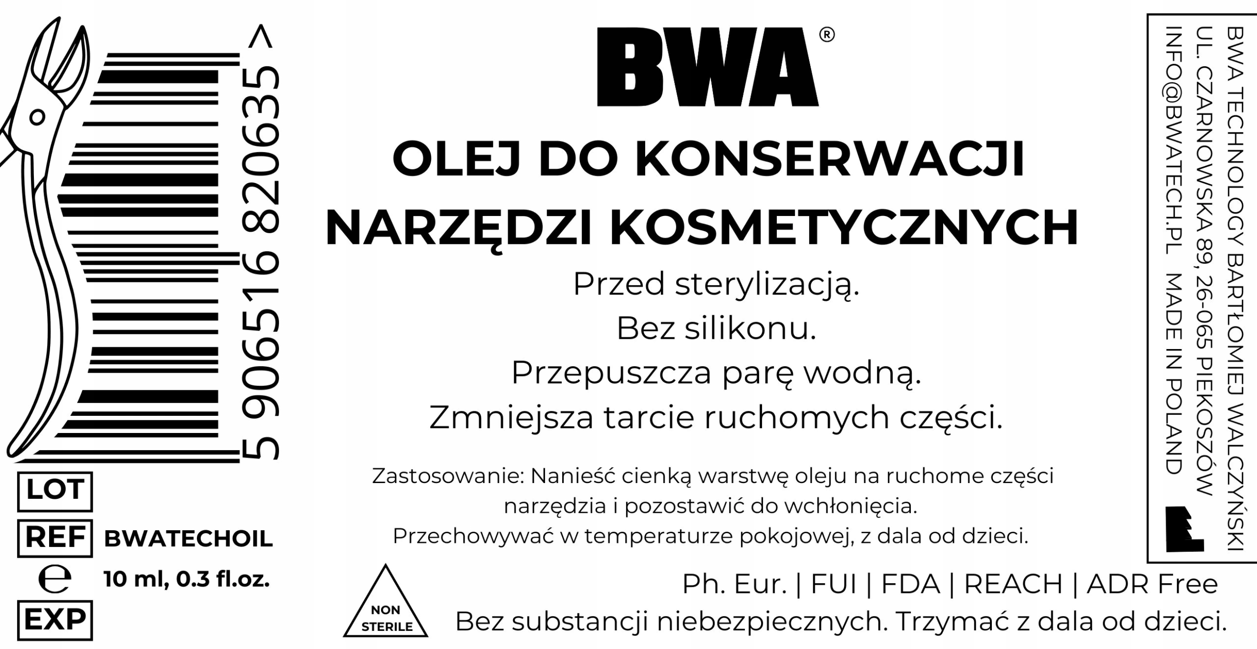 bwatechil представляет собой высокое консервантное масло, предназначенное для профессиональной защиты косметических инструментов от стерилизации. Его расширенная формула уменьшает трение движущихся элементов, обеспечивая плавную и точную работу таких инструментов, как плоскогубцы, ножницы, гильотины и другие аксессуары, используемые в салонах красоты. Благодаря анти -коррозионным свойствам, оно защищает инструменты от влаги и продлевает срок службы.
