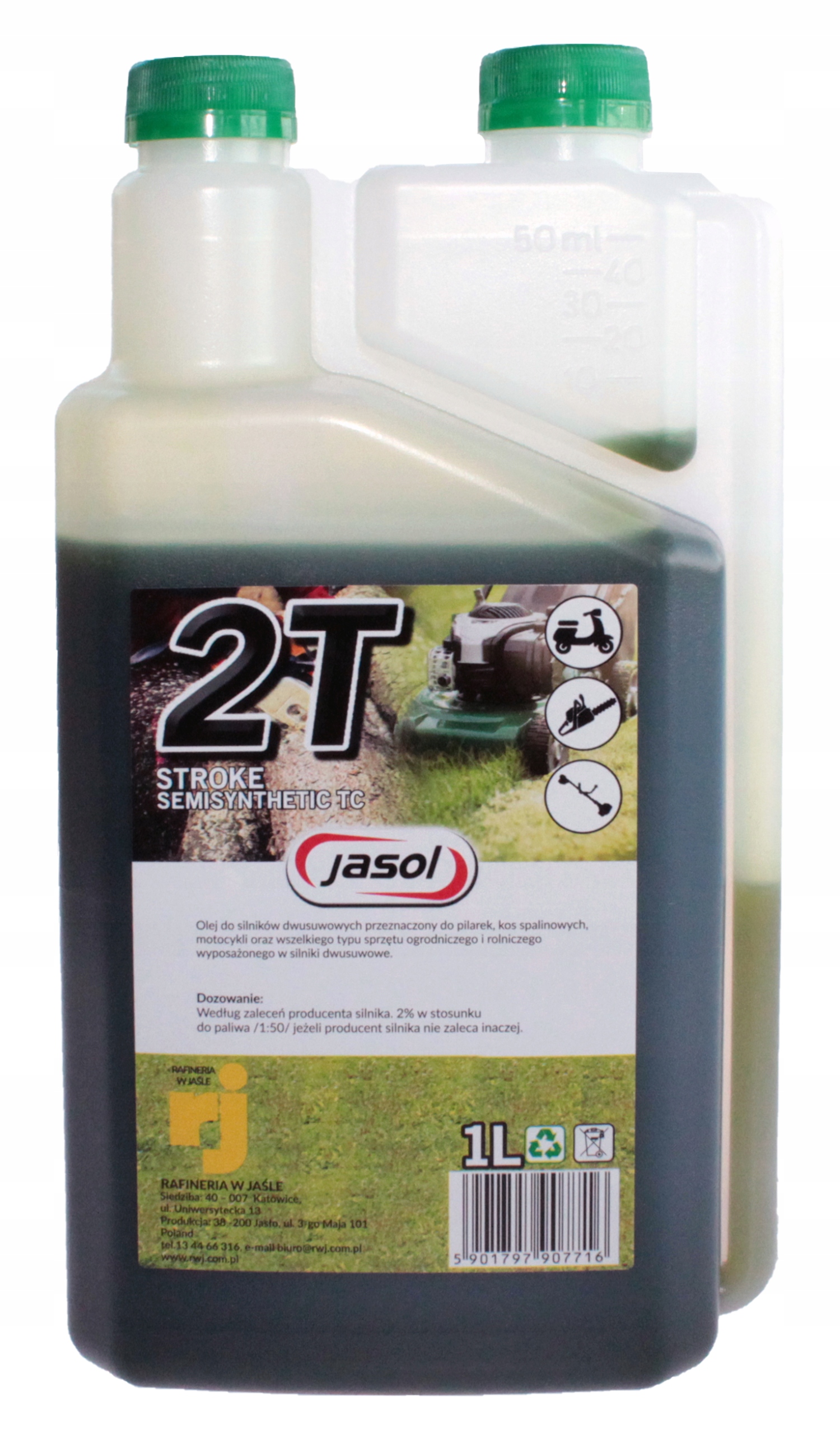 Полусинтетическое масло для двухтактных двигателей JASOL 2T STROKE OIL SEMISYNTETHETIC TC — масло с чрезвычайно низким уровнем дымовыделения, которое может использоваться в двигателях бензопил, бензопил, кусторезов и всех видов садовой техники, оснащенной двухтактные двигатели. Прекрасно смешивается с топливом и может использоваться в оборудовании, в том числе: Stihl, Husqvarna, Stiga и другие производители. Масло можно дозировать непосредственно в топливный бак в соотношении 2% по отношению к топливу /1:50/, если производитель двигателя не рекомендует иное.