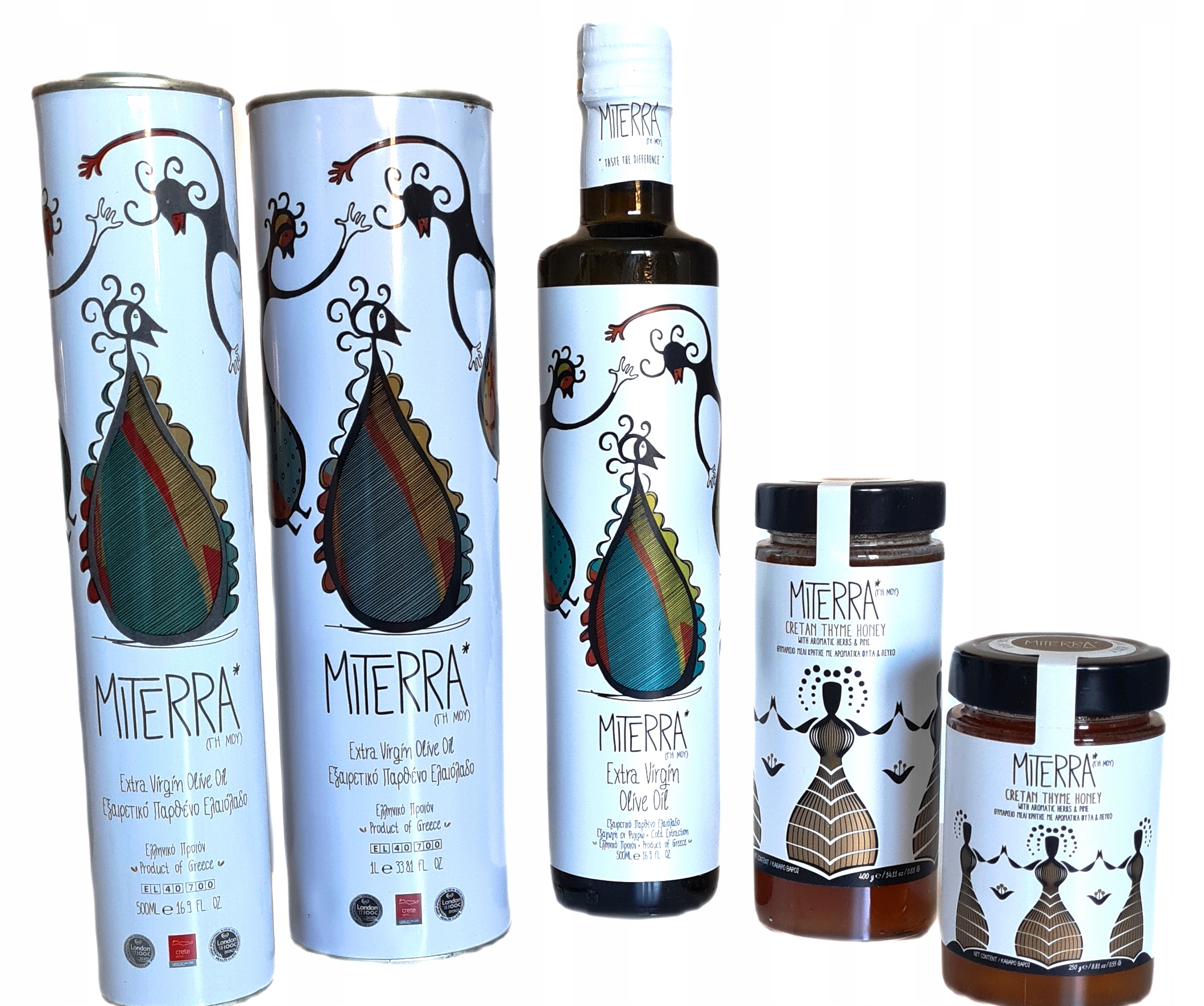 Уникальность продукции MITERRA в том, что она очень полезна, натуральна, аутентична и имеет высокое качество. Их также характеризует удостоенная наград инновационная упаковка, источником вдохновения и творчества которой является минойская цивилизация, а точнее Великая богиня минойцев, Мать-Земля, от которой и произошло название их продукция MITERRA приходит. Стремясь к распространению минойской цивилизации и предлагая кулинарную жизнь на Крите, Minoan Gaia сочетает традиции с инновациями и ноу-хау. Используя высококачественные местные ингредиенты, мы создаем продукты, пропагандирующие культуру и гастрономию Крита.