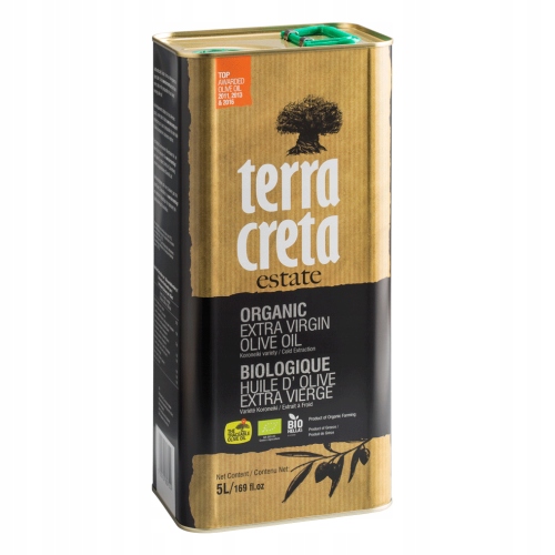 Оливковое масло первого холодного отжима производится из органических оливок, выращенных в поместье Terra Creta Estate, расположенном среди солнечных и холмистых оливковых рощ Крита.