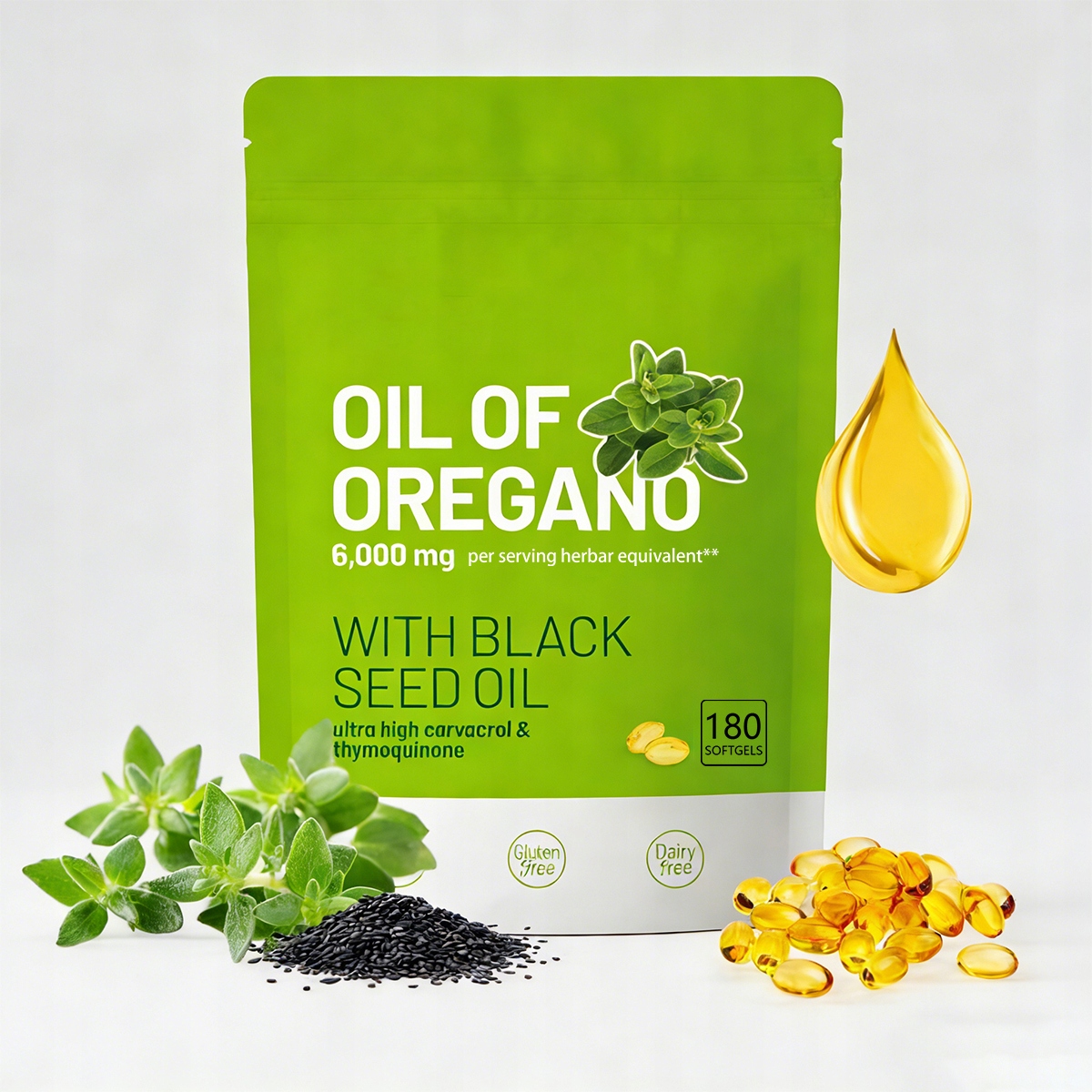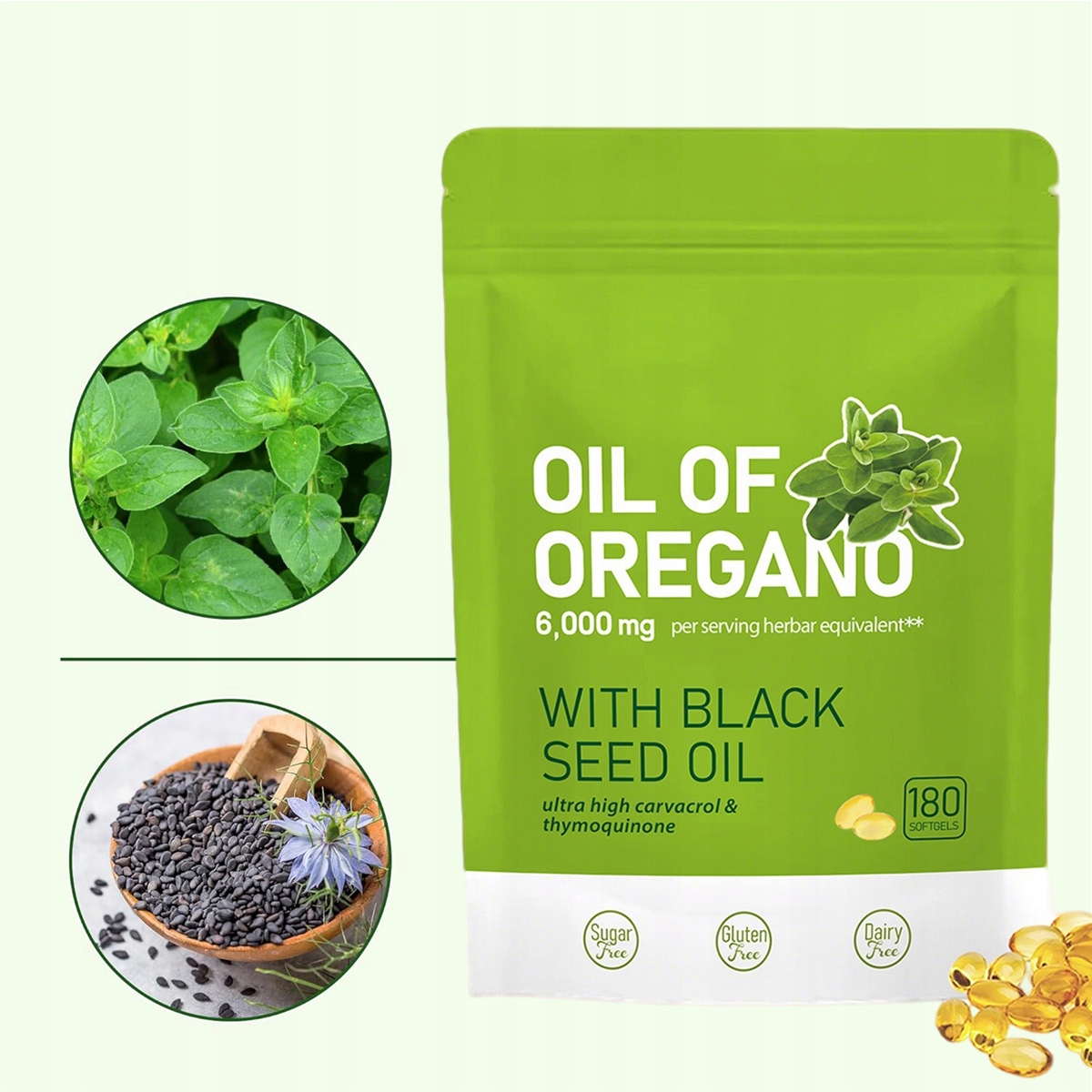 ✨✨✨ Масло орегано 180 гелевых капсул - 2 в 1 6000 мг масла орегано с маслом черного тмина 200 мг - натуральное и без ГМО - высокоэффективная поддержка иммунной и пищеварительной систем ✨✨✨
