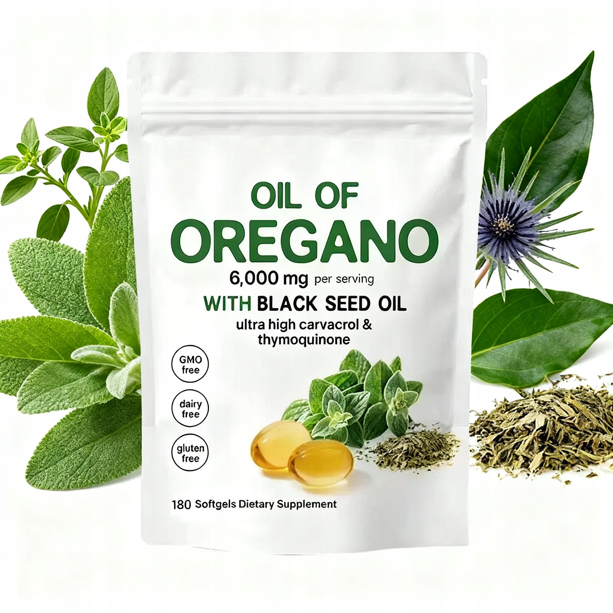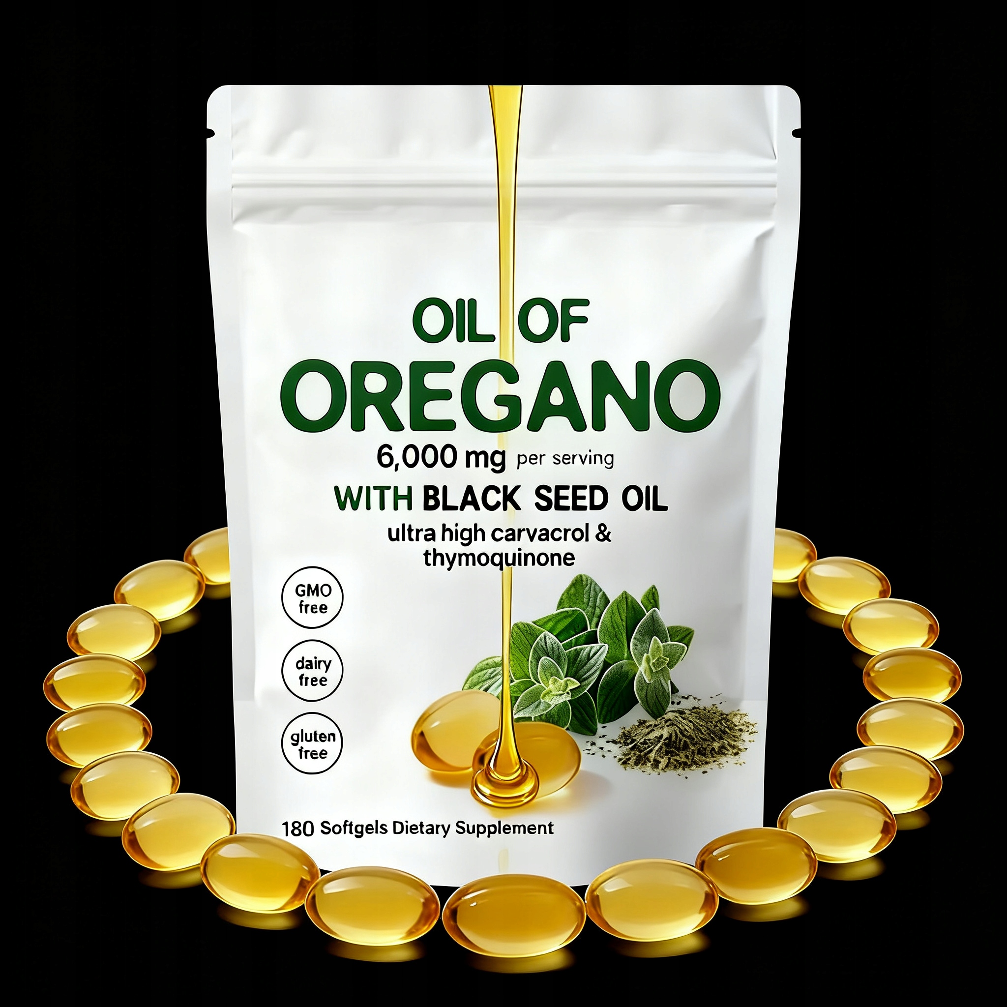 Мягкие капсулы с маслом орегано Золотая формула 2-в-1, двойная питательная поддержка Сочетает в себе природную силу орегано и черного масла, где эти два классических растительных ингредиента работают синергетически, обеспечивая мягкую поддержку в повседневном уходе за здоровьем.