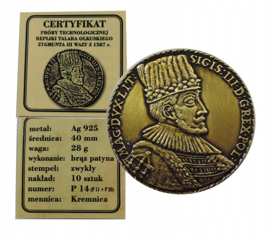 ТЕХНОЛОГИЧЕСКОЕ ИСПЫТАНИЕ ОЛКУС ТАЛЕР ЗИГМУНТА III ВАЗА 1587 ГОДА
