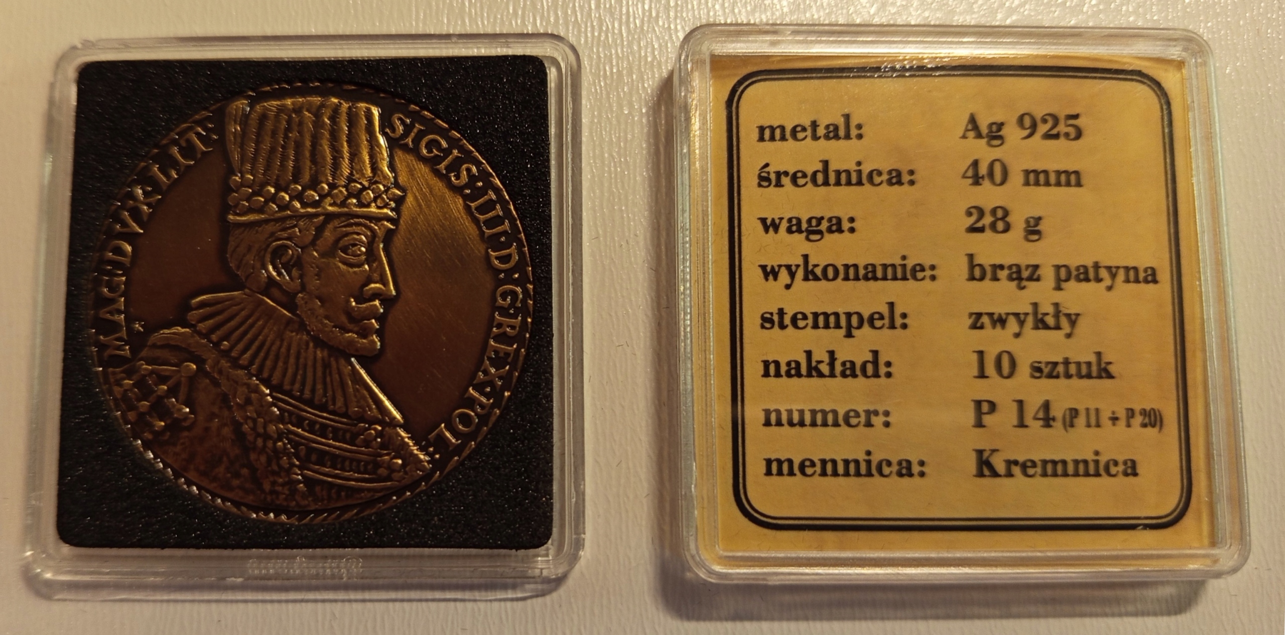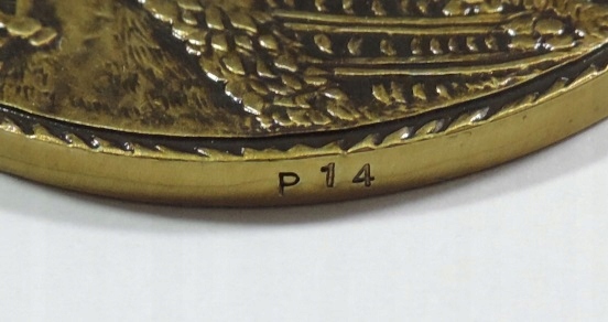 - Серия и номер монеты (отчеканенной по ребру) – P14