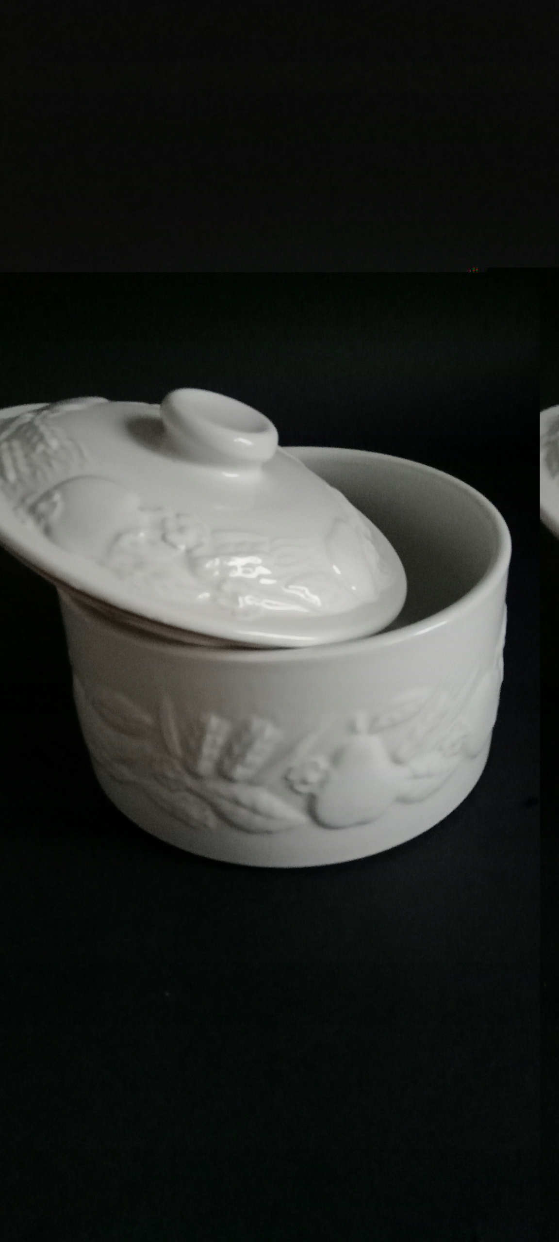 Olśniewająca waza teryna w wytłaczane owoce biała