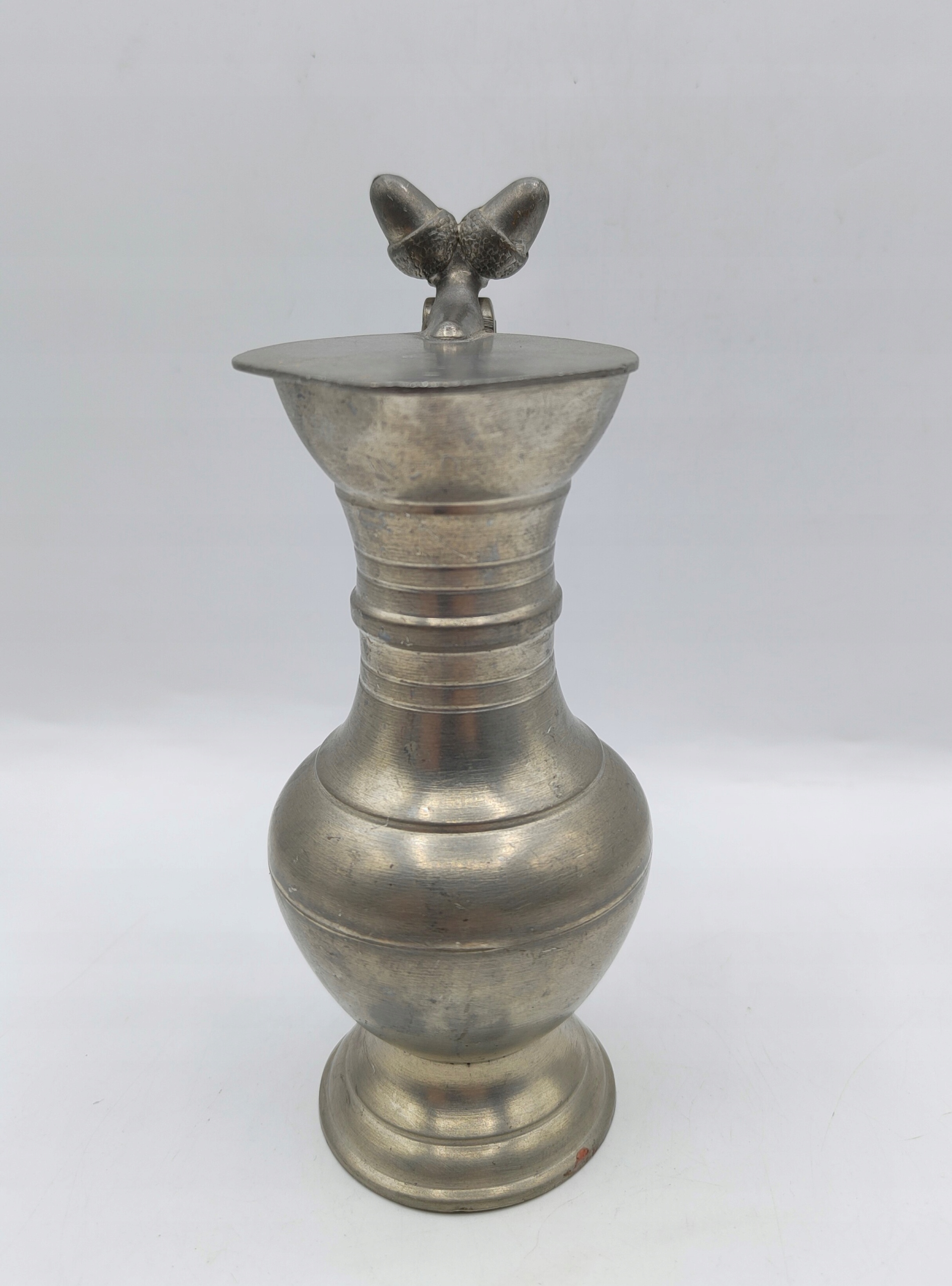 Олово интересный старый кувшин, декоративная кружка с оловом с желудями - подписано