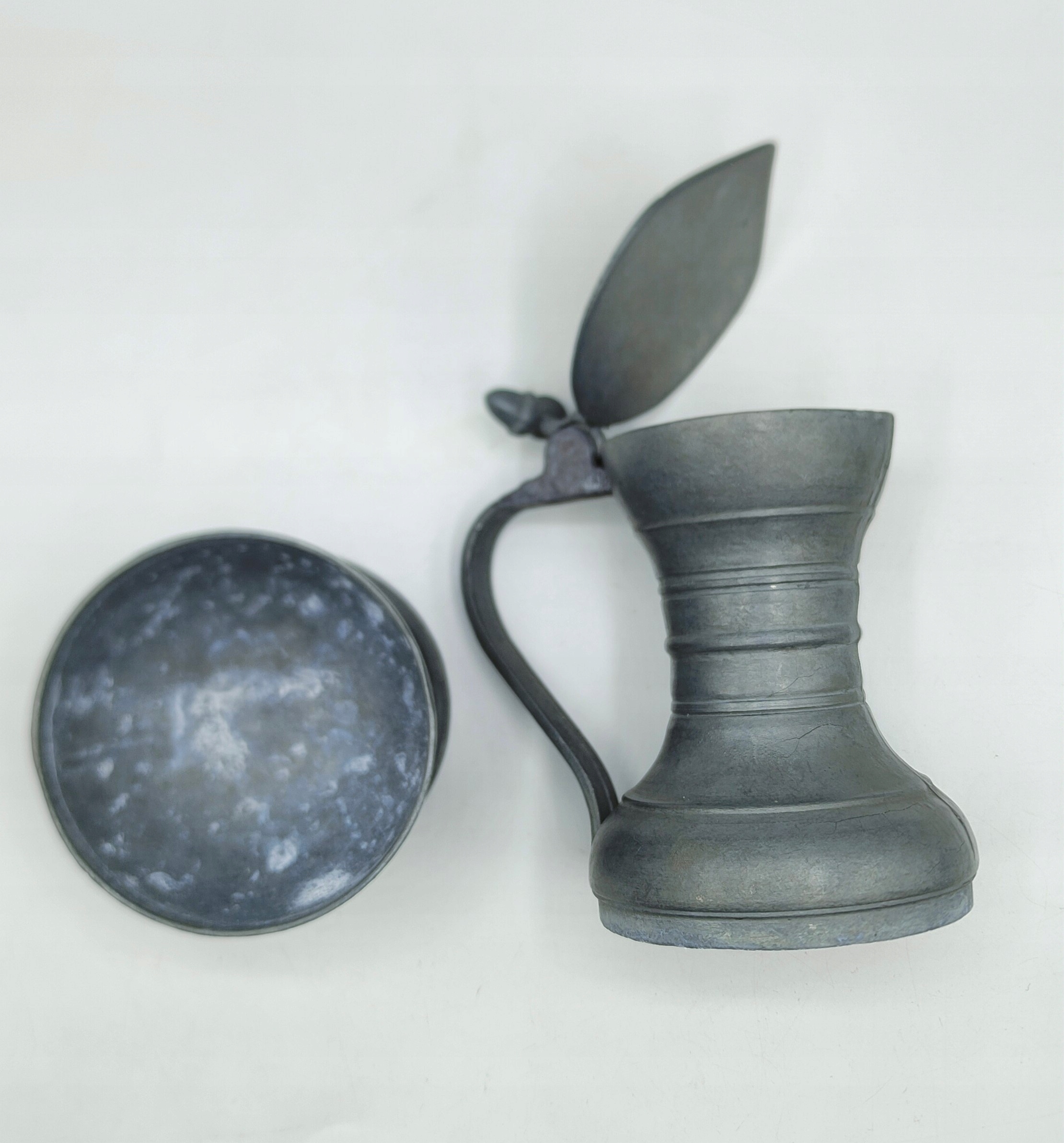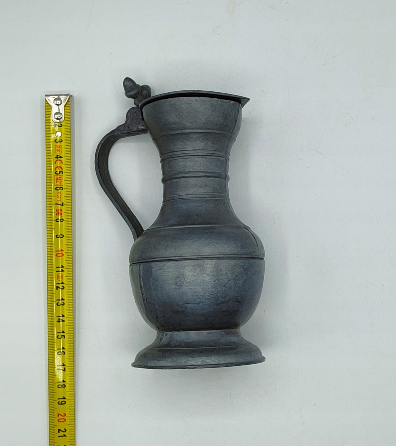 Олово подписал старый кувшин, декоративный кувшин с оловянным желудом 17,5 см.