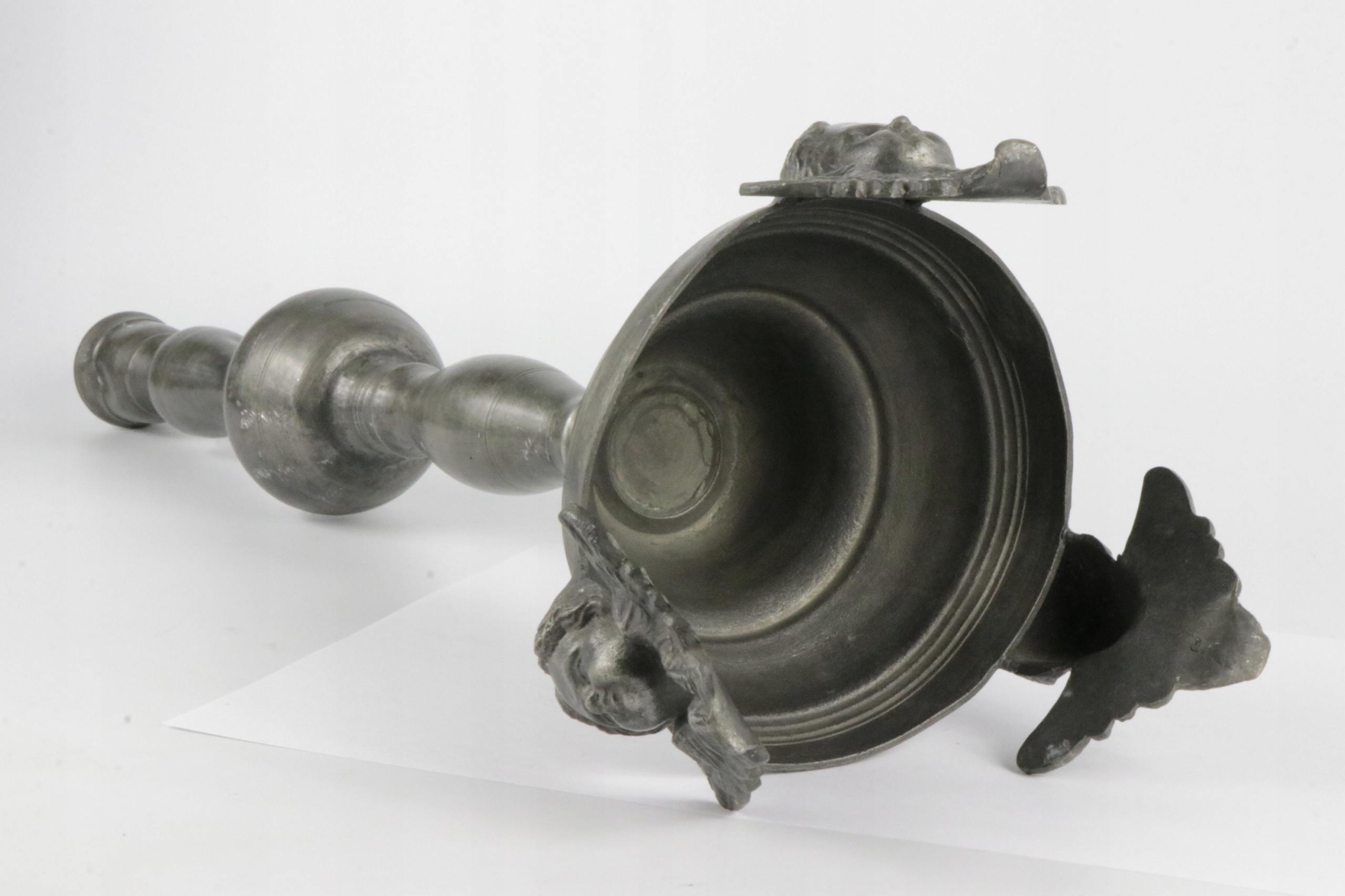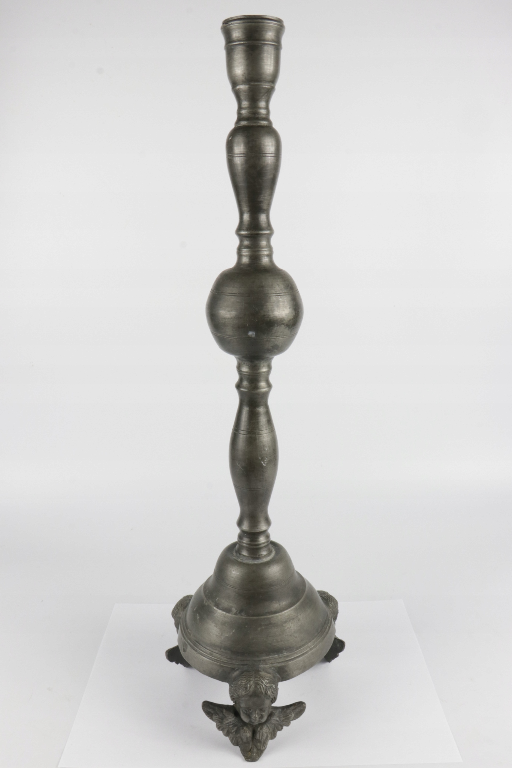 Олов'яний бароковий церковний свічник 18 століття, підписаний гербом Пунка