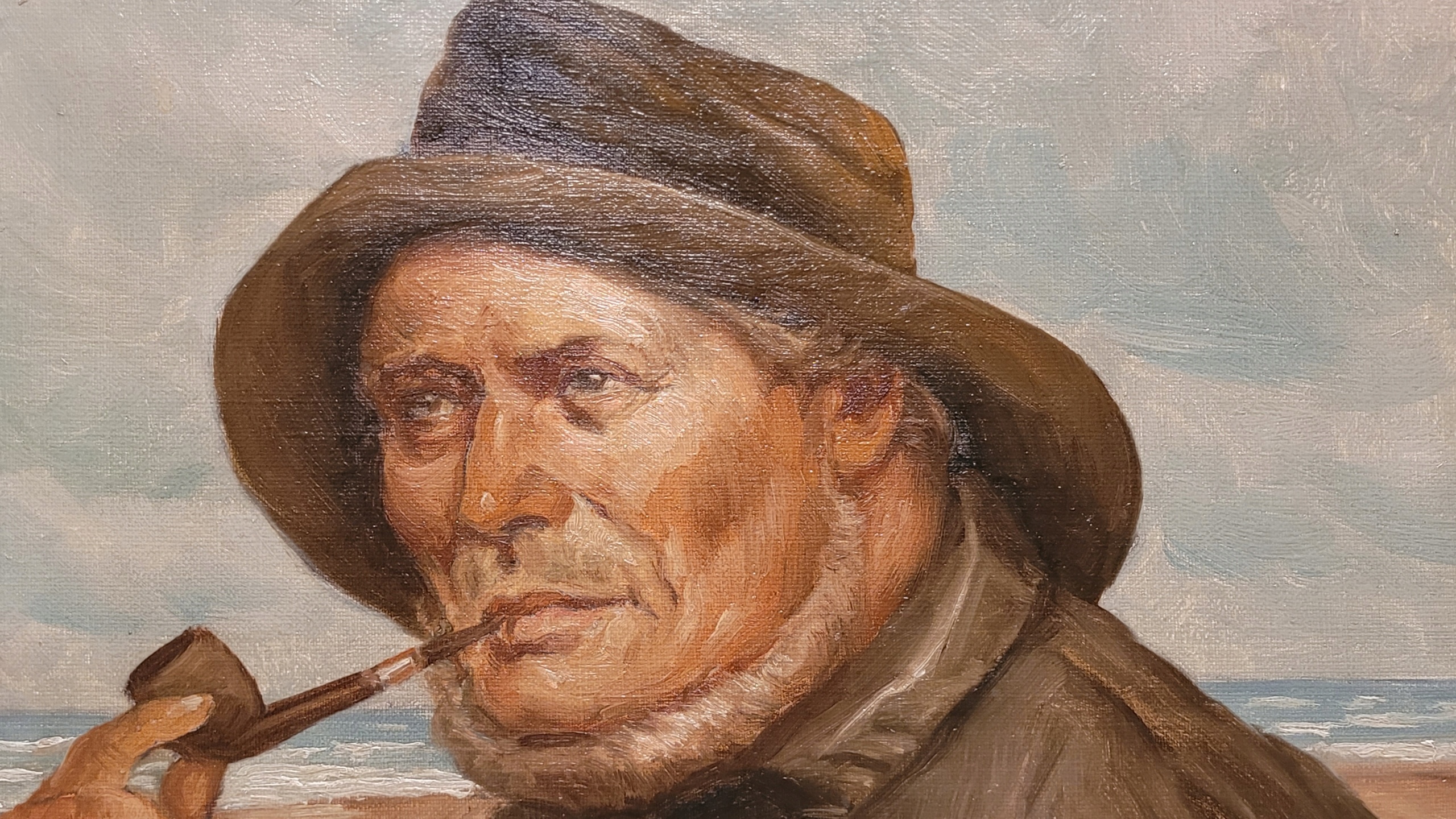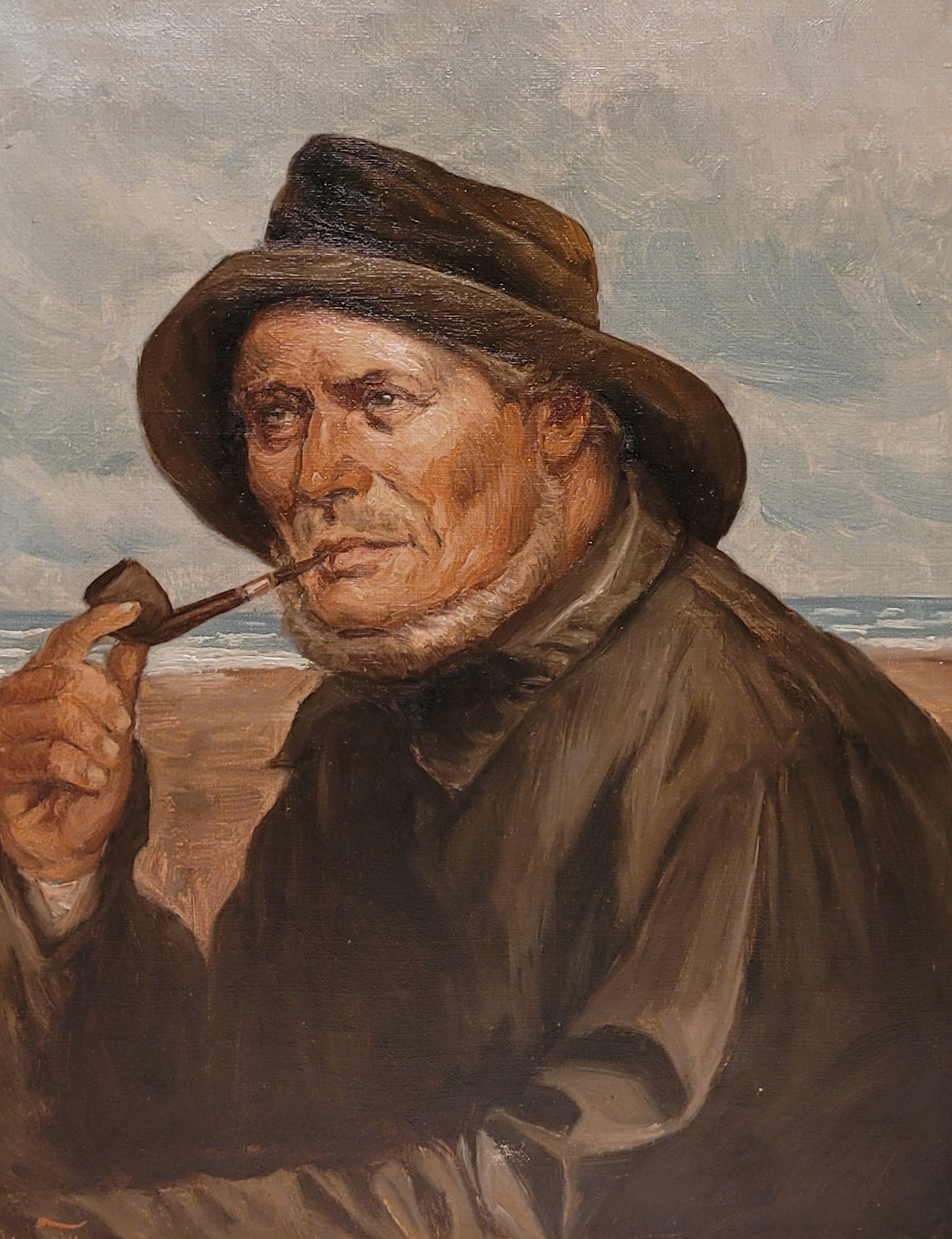 ОЛУФ СИМОНИЙ ЙЕНСЕН (1864-1923) - «ПОРТРЕТ РЫБАКА С ТРУБКОЙ», картина маслом.