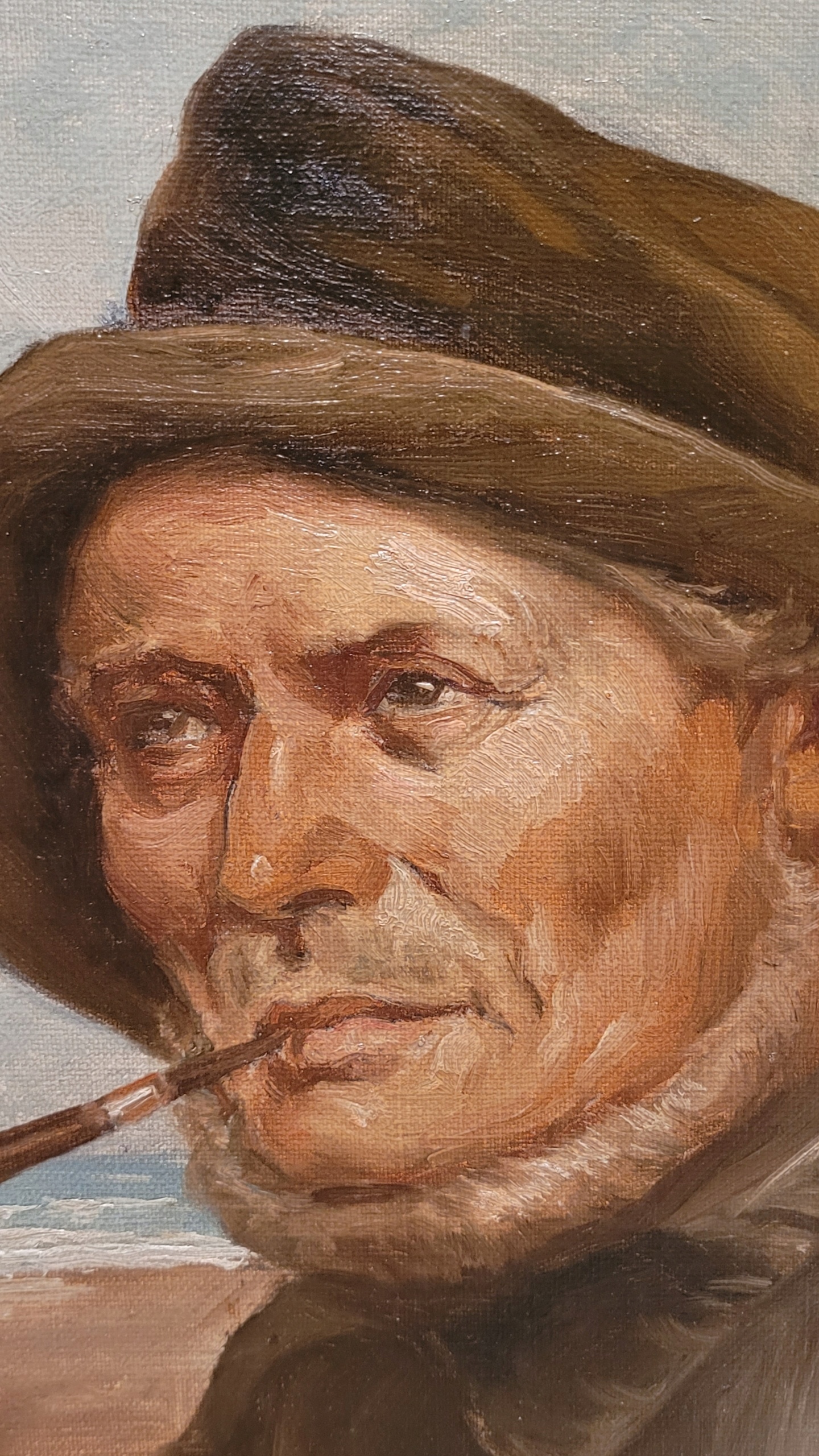 Предмет продажи - красивая, старинная картина маслом «ПОРТРЕТ РЫБАКА».