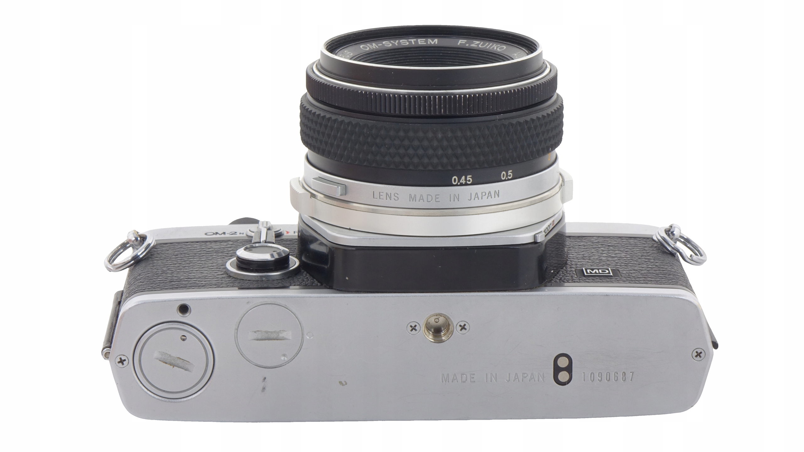 OM-2N MD camera, produced from 1979 to 1984, Имеет более низкую букву заглавную букву «N», выгравированная рядом с номером модели на передней пластине на передней пластине и наверху на левой стороне призмы. Кроме того, функция сброса была перемещена на гору камеры с использованием выключателя питания, а слово «сброс» выгравируется рядом со словом «проверка» на верхней камере.