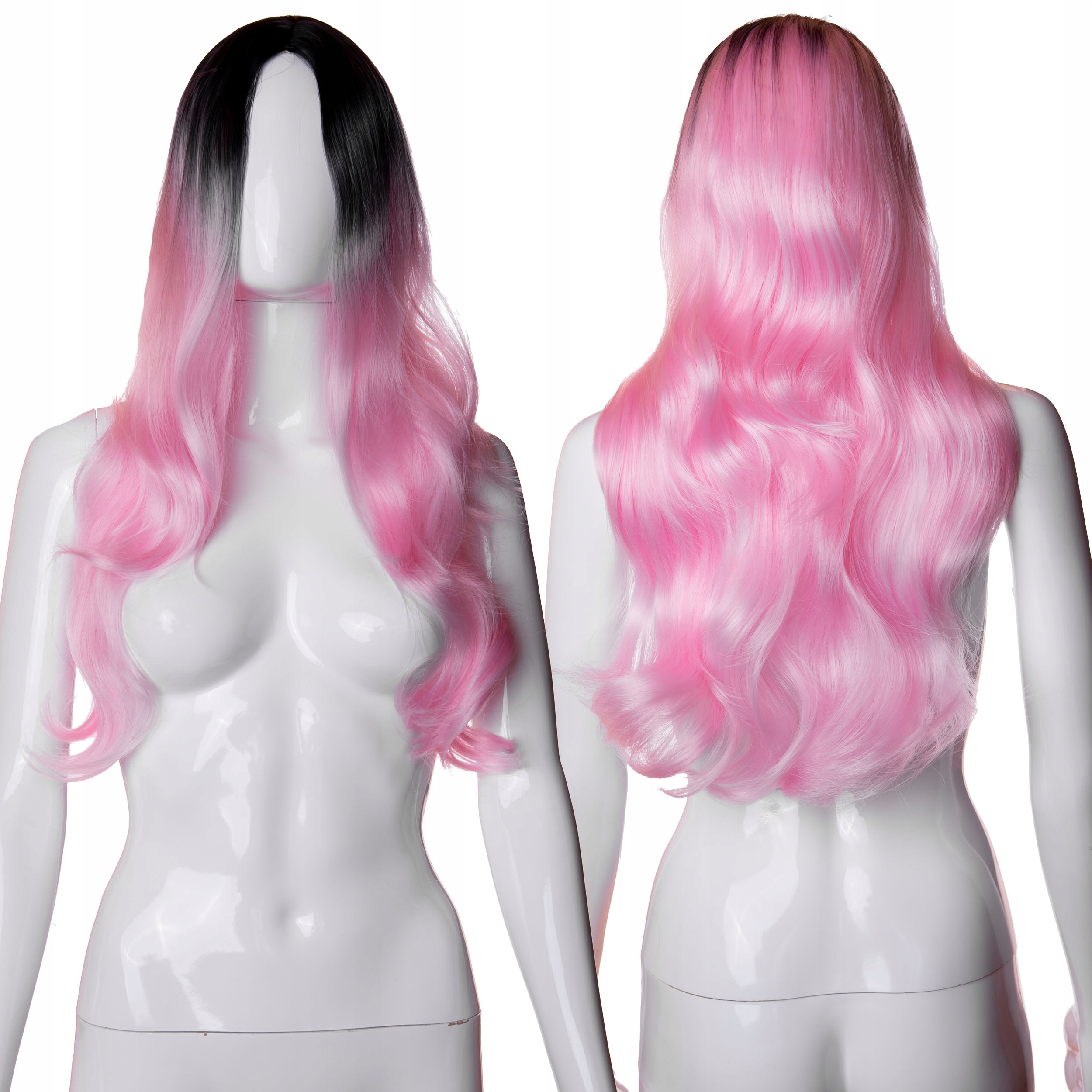 Розовый парик с омбре, длинные волосы, волны, кудри
