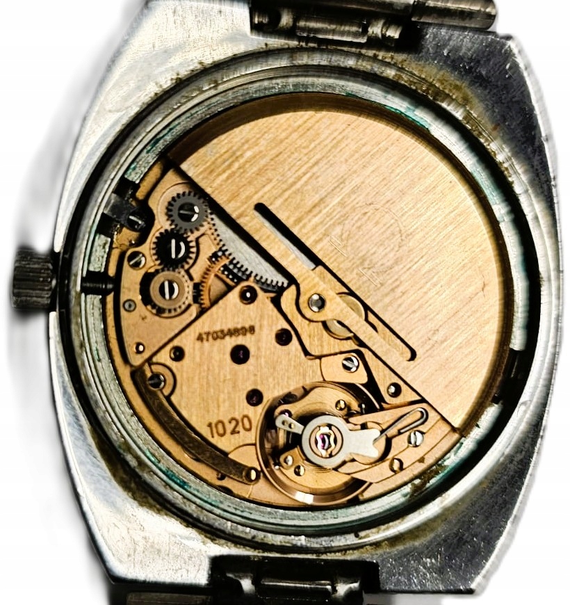 Автоматический механизм с маркировкой: OMEGA SWISS – SEVENTEEN 17 JEWELS – UNADJUSTED – 1020, с номером 47034898 (механизм с серийным номером).