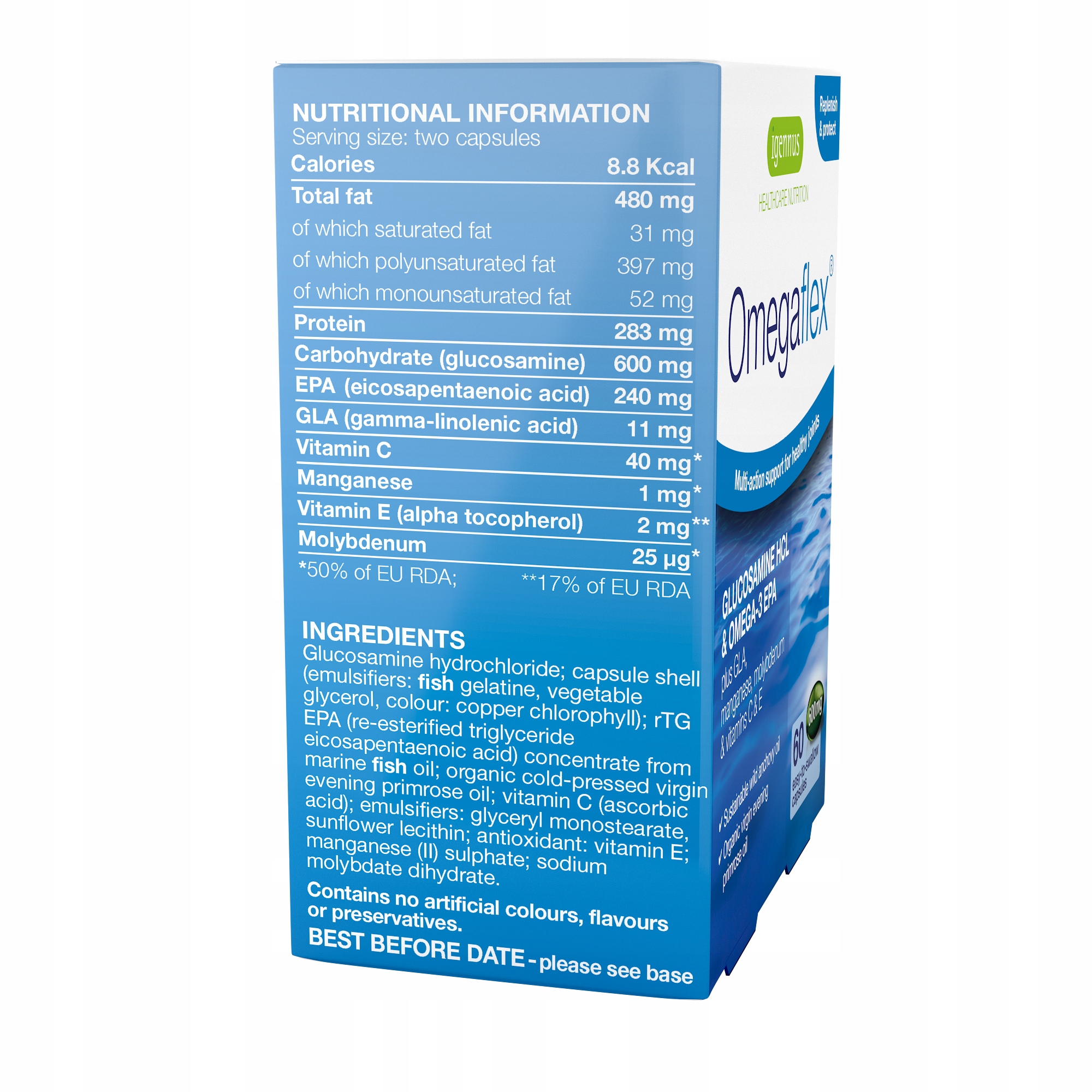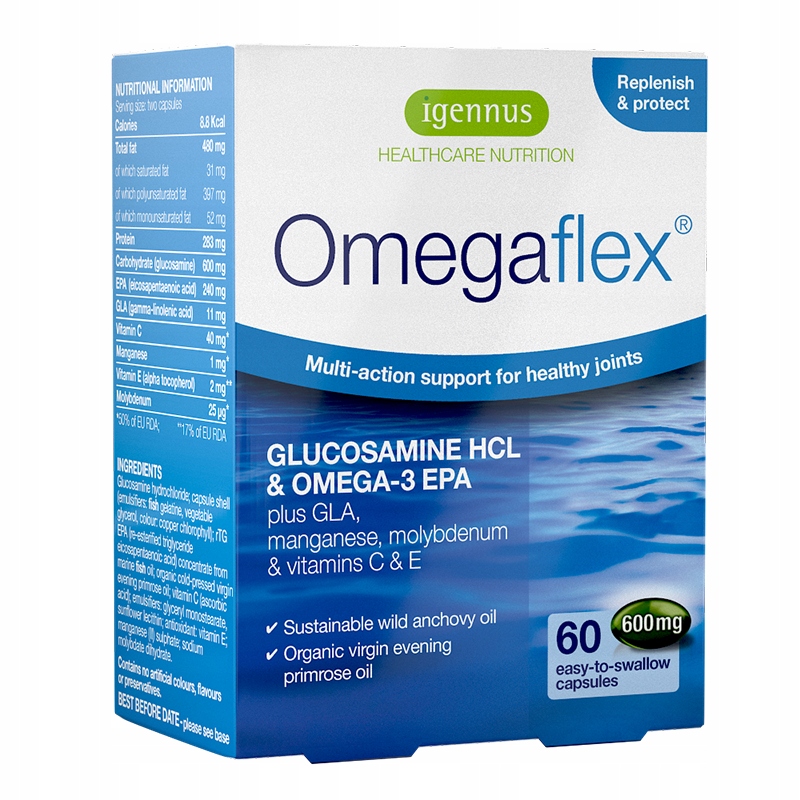 омегафлекс, глюкозамин HCl, EPA (Omega-3) из дикой сардины, GLA (омега-6) из двухлетней примирозы и других ингредиентов, необходимых для здоровых суставов