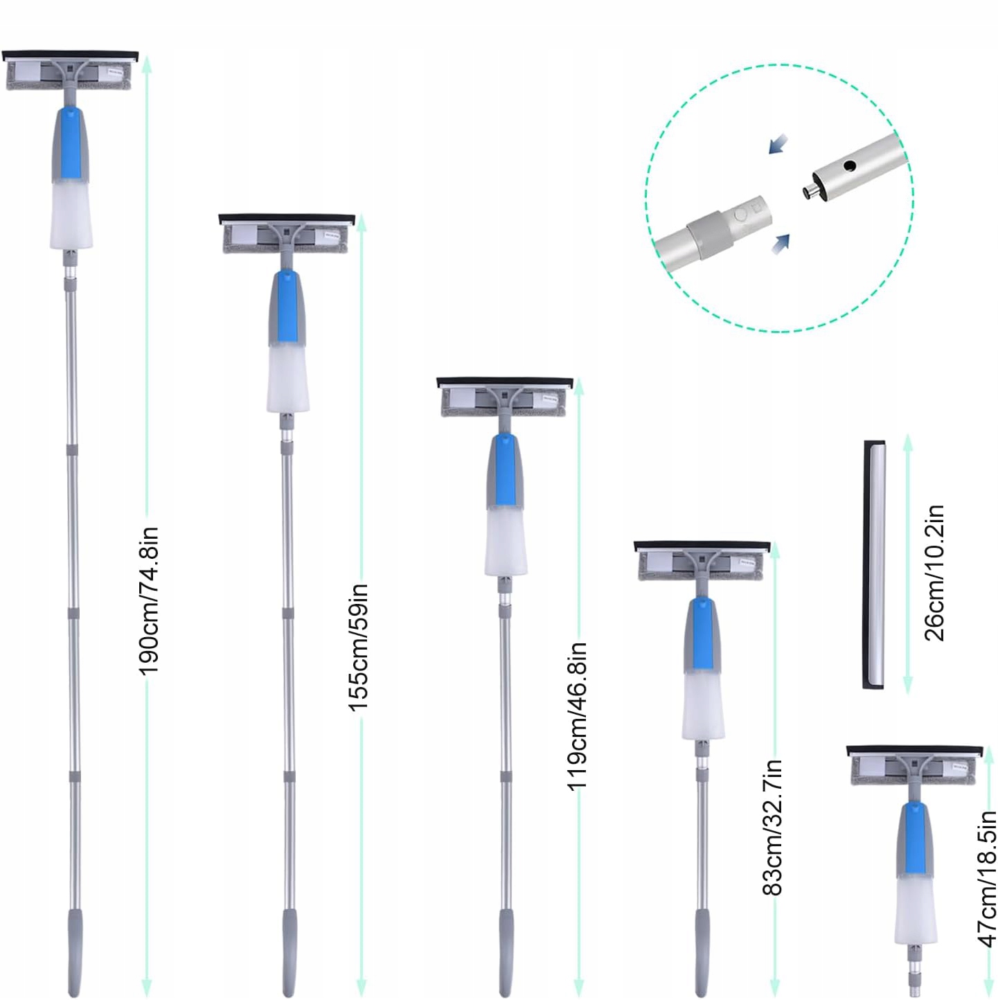 💦 ➖ Длина ручки регулируется от 47 см до 190 см (от 18,5 до 74,8 дюйма), поэтому вы можете выбрать длину, которая подходит именно вам.
