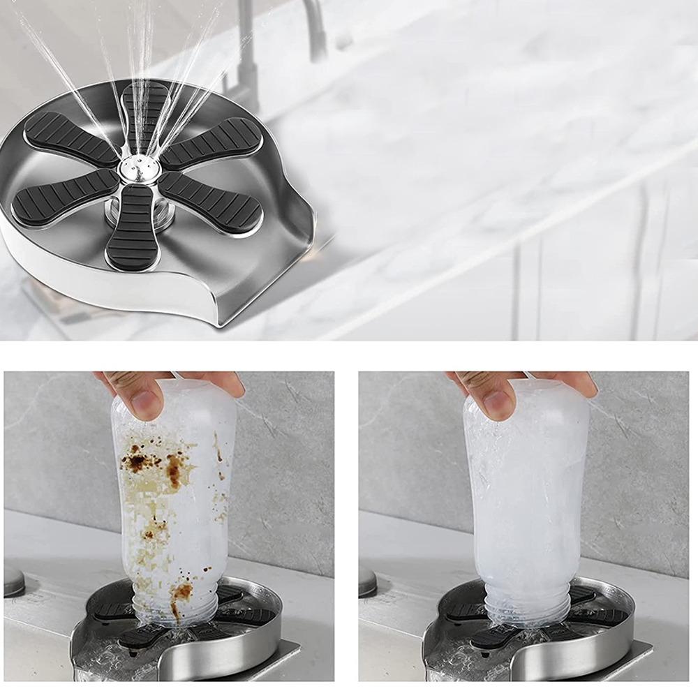 Высококачественный материал: автоматический очиститель чашек изготовлен из нержавеющей стали 304. Стеклянная мойка под слегка наклоненным углом направляет воду в раковину и не собирает грязь. поливать или создавать лужи. Силиконовая накладка бутыломойки ограничивает сжатие чашки и предотвращает ее соскальзывание во время ополаскивания. Матовое никелевое покрытие устойчиво к пятнам от воды и отпечаткам пальцев. Прекрасное дополнение к вашим кухонным аксессуарам.