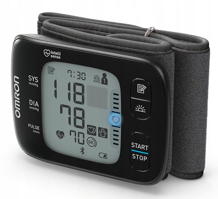 Наручный монитор артериального давления OMRON RS7 Intelli IT с датчиком позиционирования и функцией Bluetooth для использования дома или в дороге.