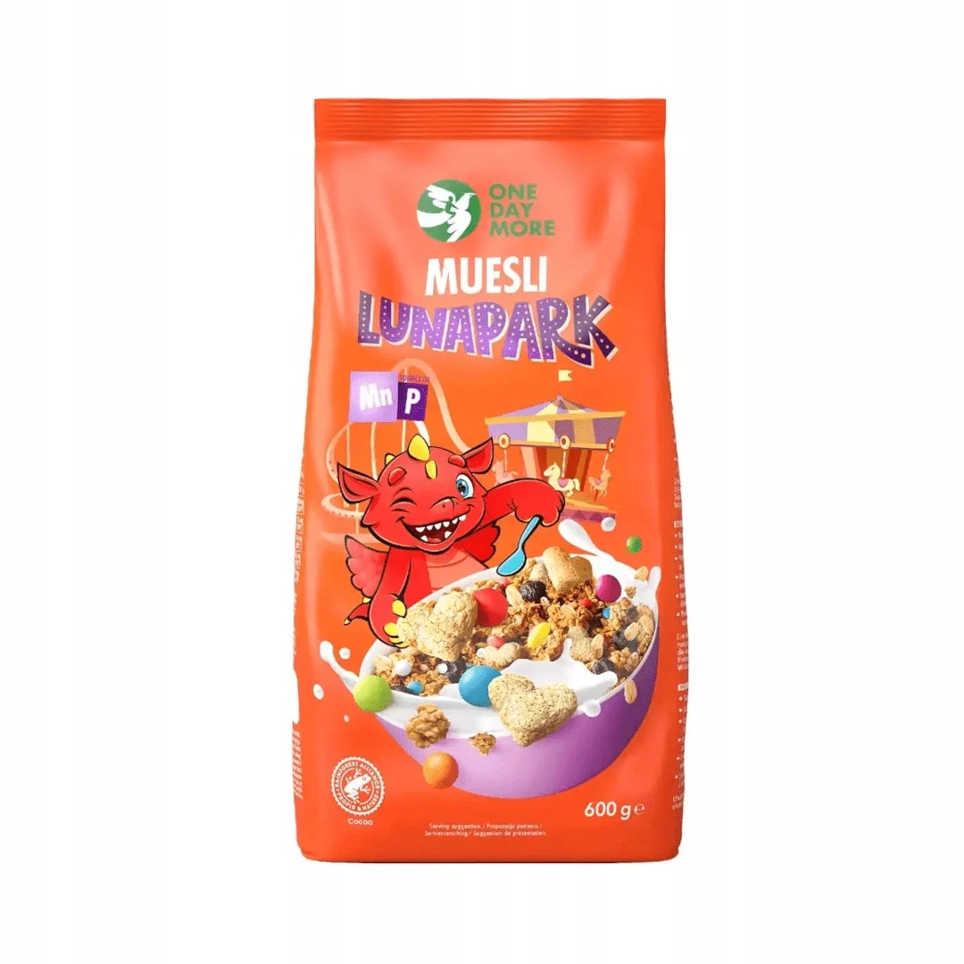 Счастливого завтрака? Только с Onedeym! Хрустящий мюсли Лунапарк с мюсли, глазовая, а также красочные чувства и сердечки зерновых и вкусная черника -это рецепт для великого начала дня. Наша смесь также является частью здоровья, которая является источником фосфора и марганца, которые поддерживают поддержание надлежащего энергетического метаболизма и здоровых костей. Разнообразная и сбалансированная диета и здоровый образ жизни важны для поддержания хорошего здоровья. Предлагаемая часть продукта обеспечивает заявленное полезное влияние для здоровья.