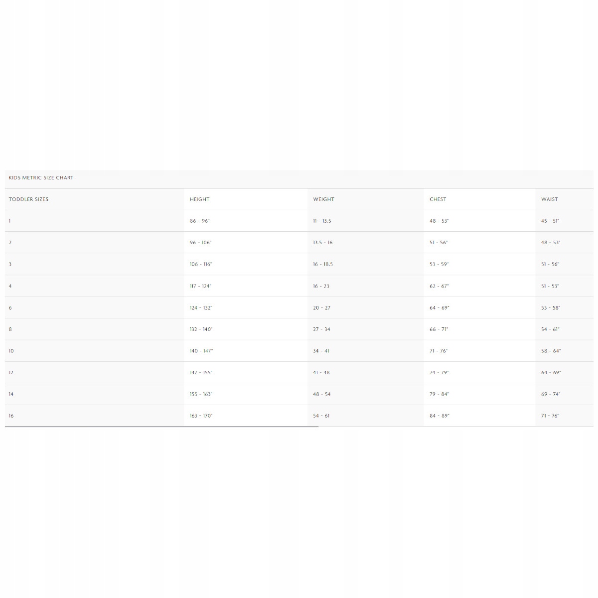 Выбор размера: Размер (см) вес (кг) грудной клетки окружности (см) окружности на талии (см) 1 88 - 98 11-13,5 48 - 53 45,5 - 51 2 98 - 108 13,5 - 16 51 - 56 48 - 53 3 108 - 118 16-18 53 - 58 51 - 56 4 118 - 126 18 - 25 58 - 64 51 - 56 6 126 - 133 22,5 - 29,5 62 - 67 55 - 60 8 133 - 141 27 - 34 66 - 71 58 - 64 10 141 - 147 34 - 41 71 - 76 58 - 64 12 147 - 155 41 - 48 74 - 79 64 - 69 14 155 - 163 48 - 54,5 79 - 84 69 - 74 16 163 - 170 54,5 - 61 84 - 89 71 - 76