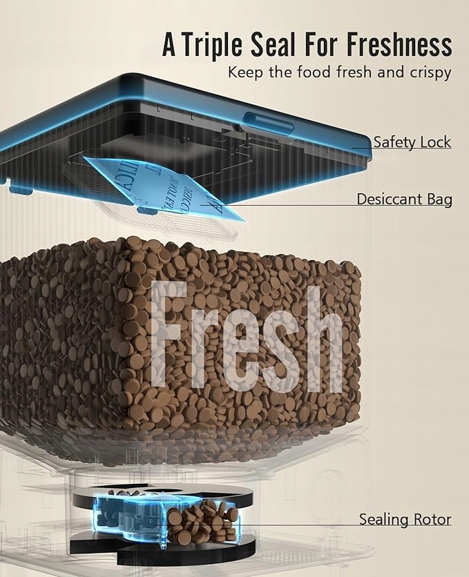 ➡ У вас есть 5 -литровый фидер , идеально подходит для тех, кто часто путешествует или уезжает в отпуск. Вы должны записывать хорошо известные голоса кошек, которые играют во время кормления, создавая семью и удобную атмосферу