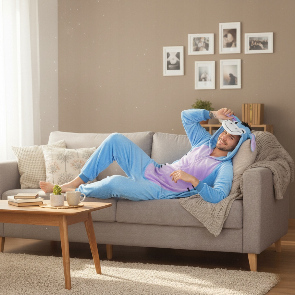 Погрузитесь в мир веселья и комфорта с очаровательным комбинезоном «Иа»! Мягкий и приятный на ощупь материал окутает вас теплом, обеспечивая полный комфорт во время отдыха дома, веселья на вечеринке или переодевания с друзьями. Костюм имеет практичный капюшон, украшенный характерными для Иа длинными ушами и очаровательной мордочкой, а также удобную застежку, облегчающую надевание. Этот симпатичный ослик из «Винни-Пуха» славится своим спокойным, слегка меланхоличным нравом, что придает всему произведению неповторимый шарм. Также подойдет в качестве подарка, который вызовет улыбку на лице получателя. Благодаря тщательной отделке и качественному материалу костюм прослужит вам долго. Это сочетание веселья, комфорта и оригинального стиля!