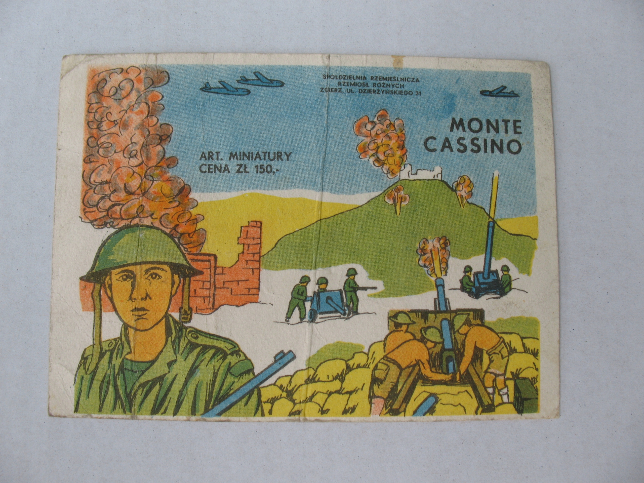 Старая, оригинальная бирка от игрушки: миниатюры солдатиков Монте-Кассино. Оригинал. Датировка: 1980-е годы. Размеры: 84 х 117 мм. Состояние: на мой взгляд -db/+dst, небольшие загрязнения, заломы и погибы, все видно на сканах. Смело совершайте покупки.