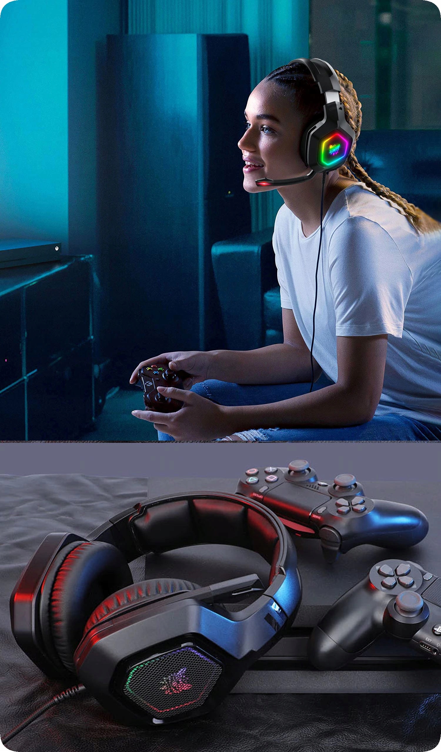Эргономичный дизайн игровых наушников K10 в сочетании со сверхмягкими амбушюрами обеспечивают удобство и комфорт использования, к которым стремятся геймеры. Даже во время длительных игр они не утомят вас своим присутствием на голове. Благодаря этому вы сможете полностью сосредоточиться на игре. Кроме того, оголовье наушников регулируется, поэтому вы можете легко подогнать их размер под свою голову. Еще одним преимуществом ONIKUMA K10 является внешний вид наушников. Футуристический стиль, классический черный цвет и добавление светодиодной подсветки RGB на чашках наушников. Все это делает гарнитуру чрезвычайно удобной и красивой для геймеров.