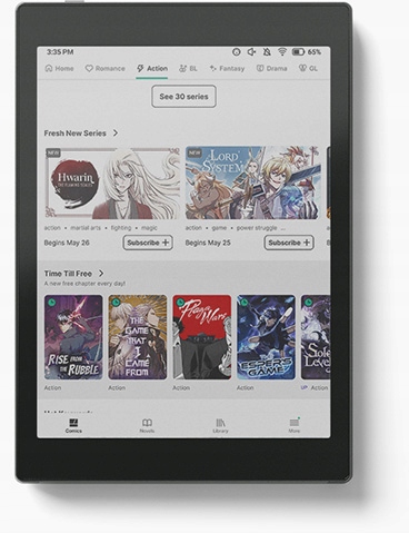 Красочный экран Kaleido 3¹ оживит каждую прочитанную вами книгу, а его мягкие оттенки и высокое разрешение будут радовать глаз. Наслаждайтесь любимыми блогами, приложениями и иллюстрированными электронными книгами на экране, напоминающем бумагу², не напрягая зрение даже под прямыми солнечными лучами.