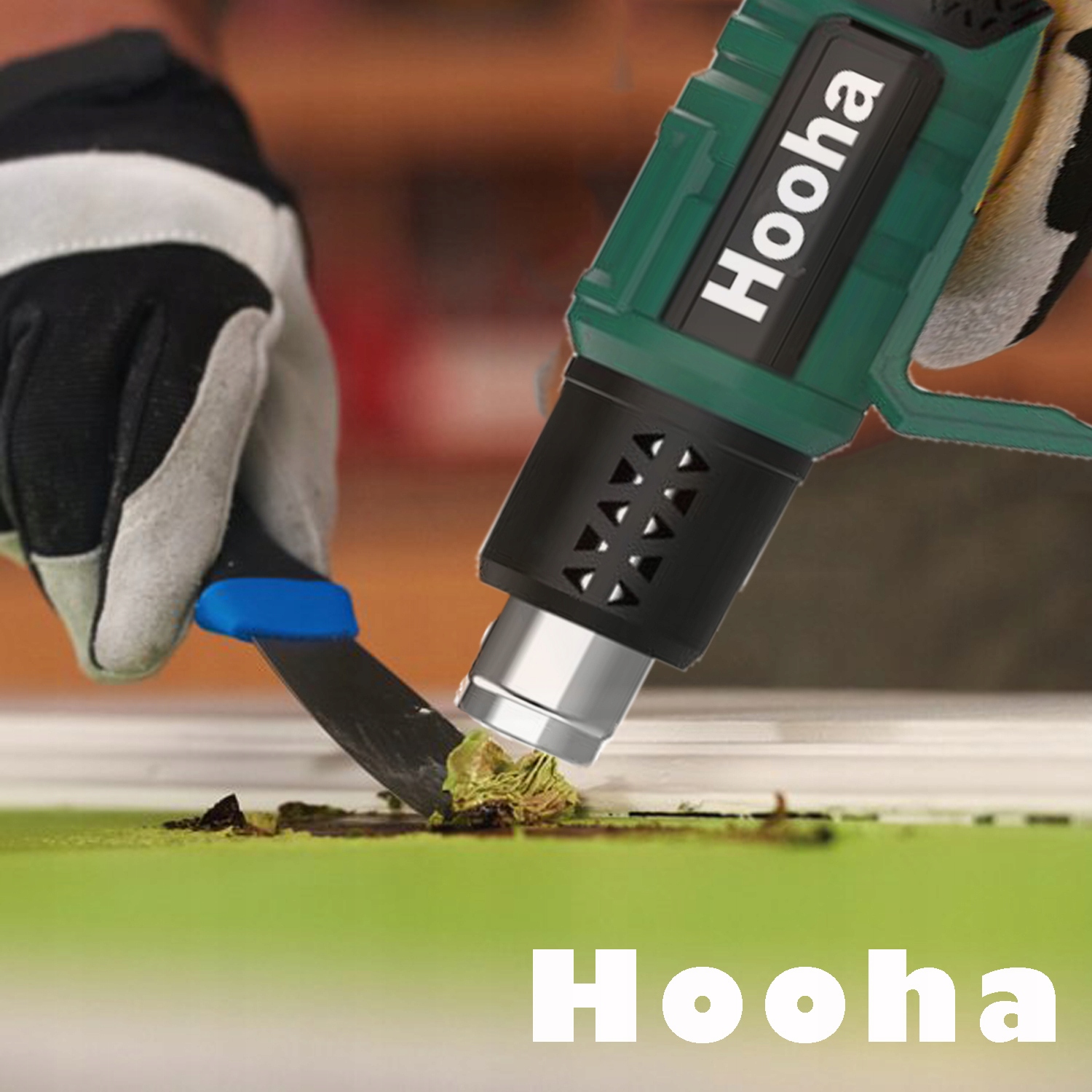 Универсальная тепловая пушка Hooha производит струю очень горячего воздуха, для ремонта базовой защиты лакокрасочного покрытия, для работы с термоусадочными материалами при монтаже, для сварки пластиковых элементов, для сушки влажной краски, для профессиональной оклейки автомобиля кузова и окна и т. д.