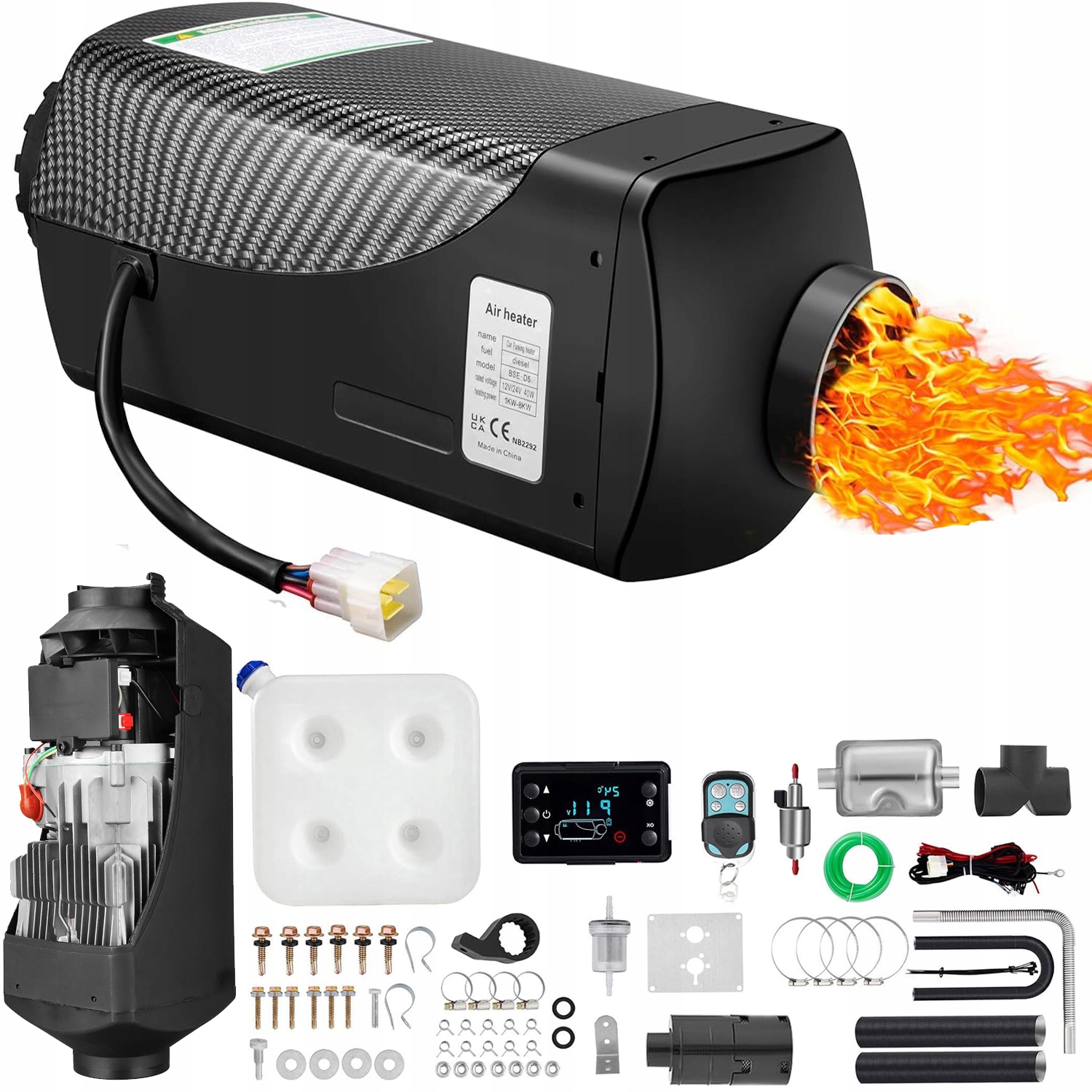 ОТОПЛИТЕЛЬ ДИЗЕЛЬНЫЙ НАГРЕВАТЕЛЬ 8КВТ 12В С ЦИФРОВЫМ ЖК-ДИСПЛЕЕМ ЧЕРНЫЙ