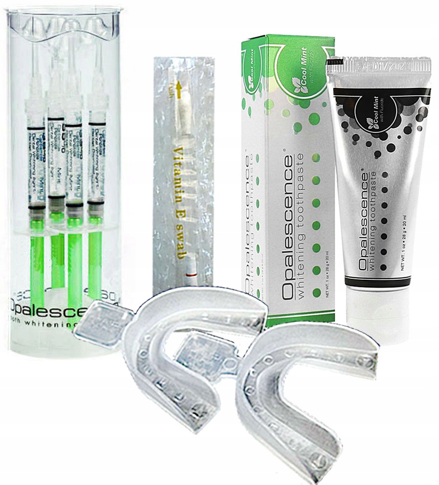 ЦЕНА ЗА 4 шприца Opalescent + Витамин Е с Алоэ Вера + Зубная паста Opalescent Whitening 28г + Накладки СДЕЛАНО в США b>