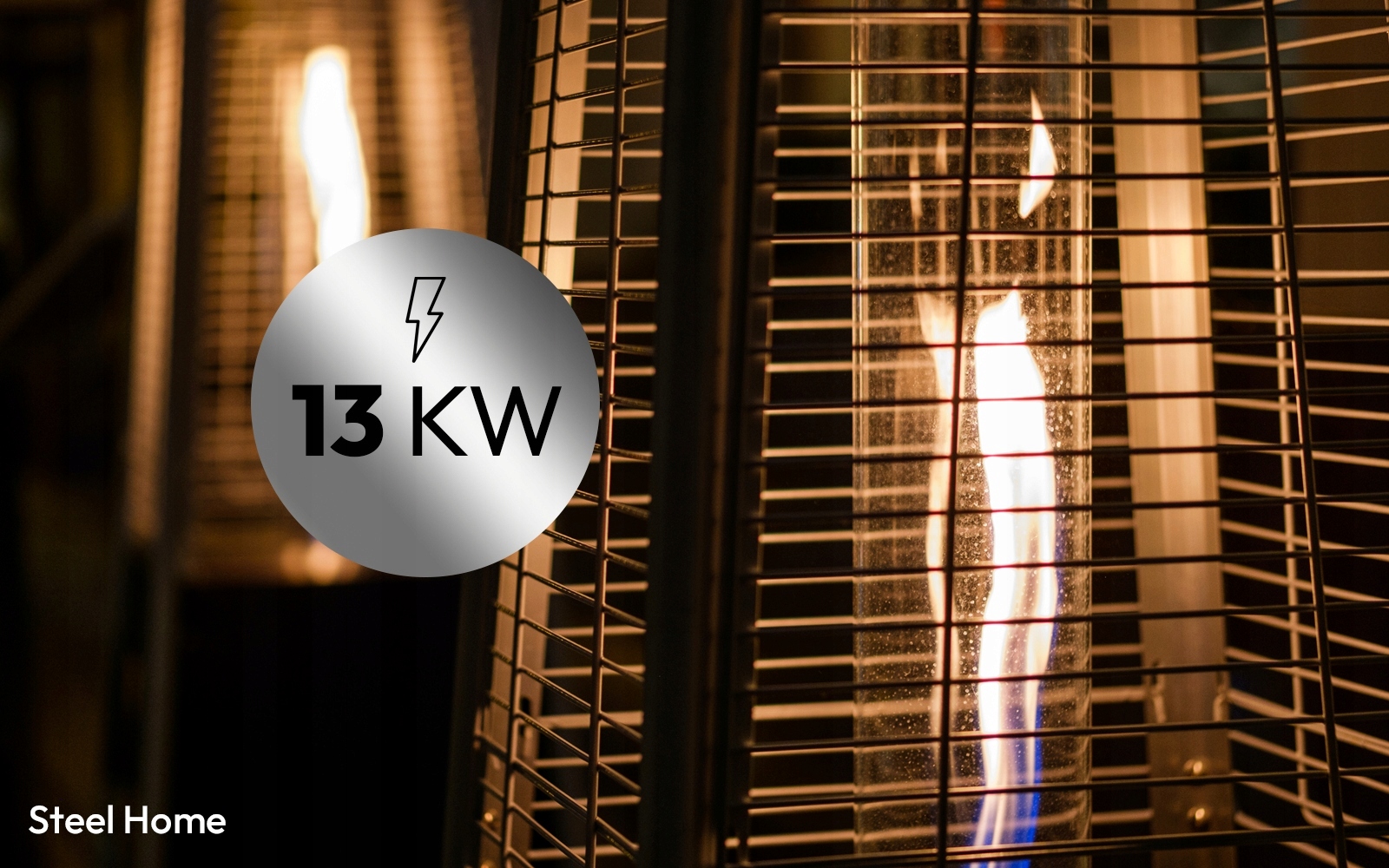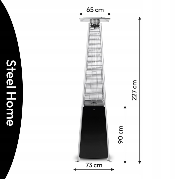 Обладая максимальной мощностью 13 кВт, обогреватель для патио SteelHome легко обогревает даже большие открытые пространства. Устройство равномерно распределяет тепло, обеспечивая приятную температуру в радиусе нескольких метров.