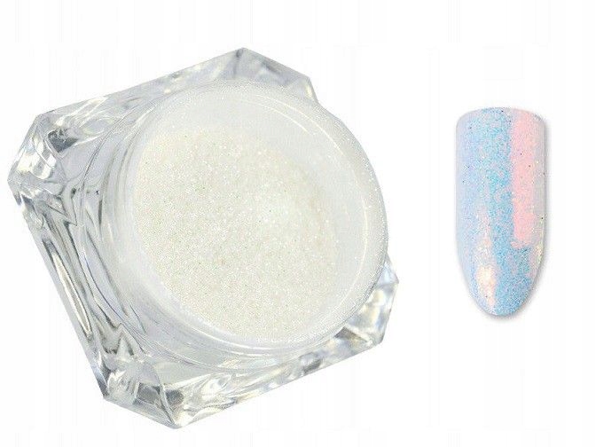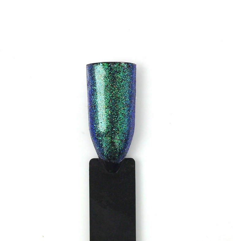 При нанесении на ногти пудра опализуется различными цветами в зависимости от угла падения света. , преобладающий цвет светло-зеленый. Эффект зависит от цвета тональной основы – практически на всех она смотрится по-разному.