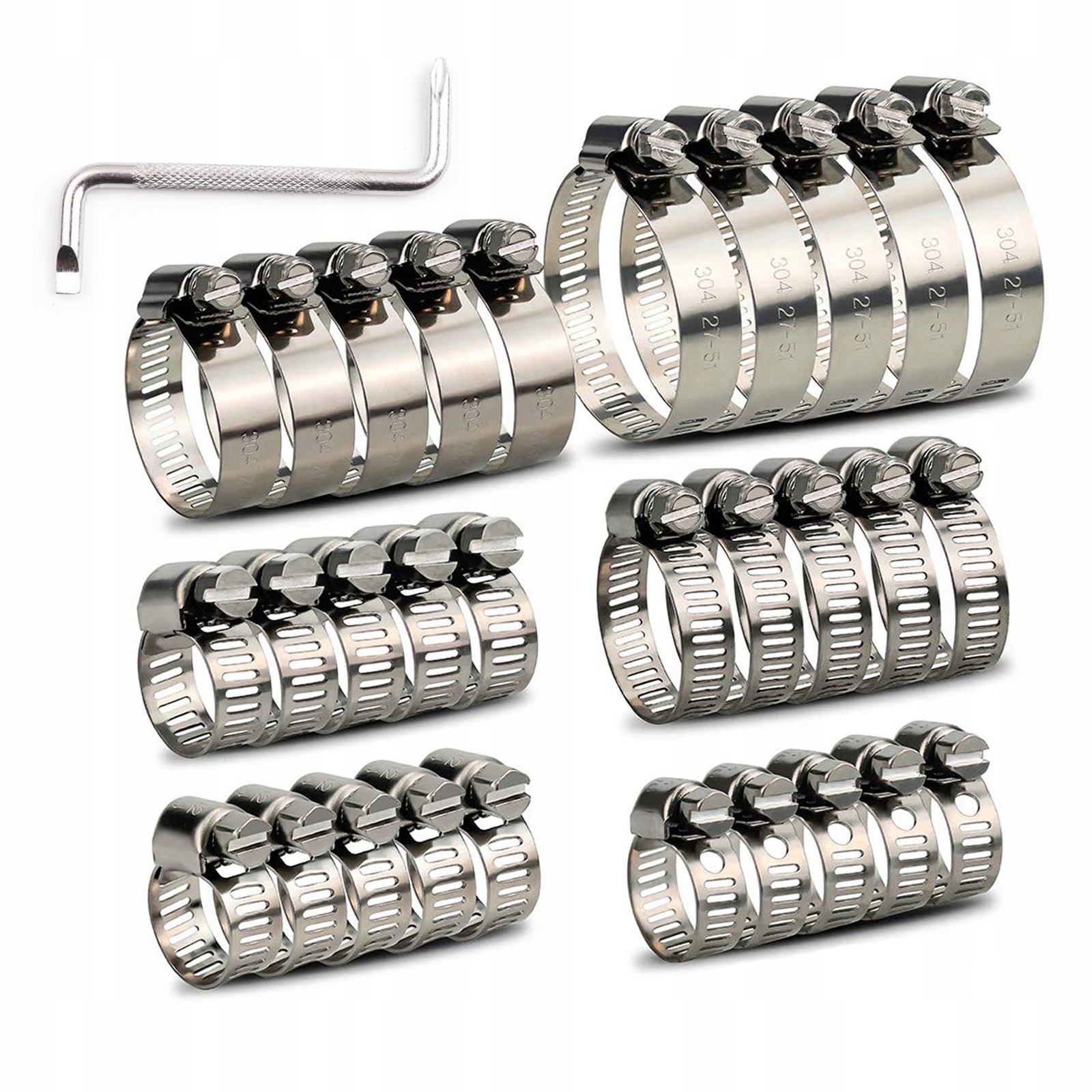 - ✅ 【Широкий диапазон регулировки размера】 - Хомуты из нержавеющей стали включают в себя стальные хомуты для шлангов 6 разных диаметров. адаптироваться к различным шлангам: 6-12 мм, 10-16 мм, 13-19 мм, 16-25 мм, 21–38 мм, 27–51 мм.