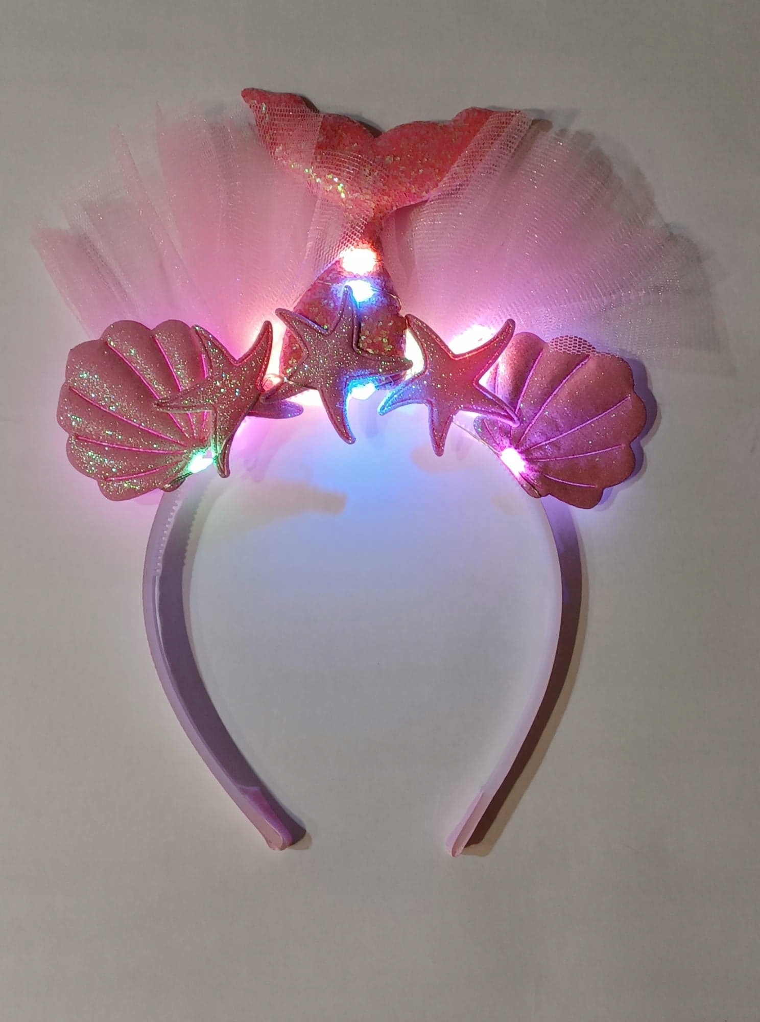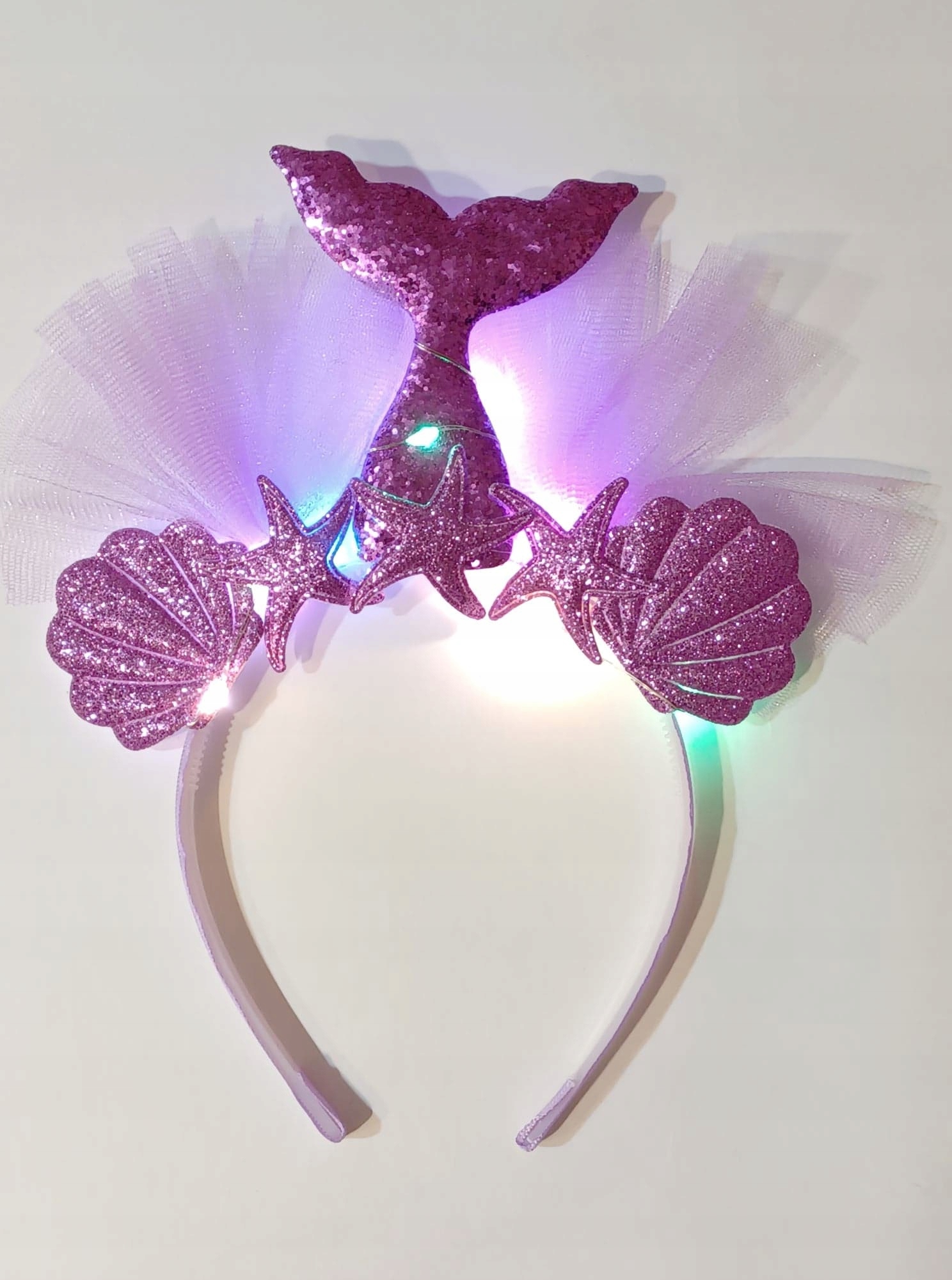 OPASKA NA WŁOSY MAŁA SYRENKA ŚWIECĄCA LED ARIELKA OPASKA Z OGONEM RYBKA