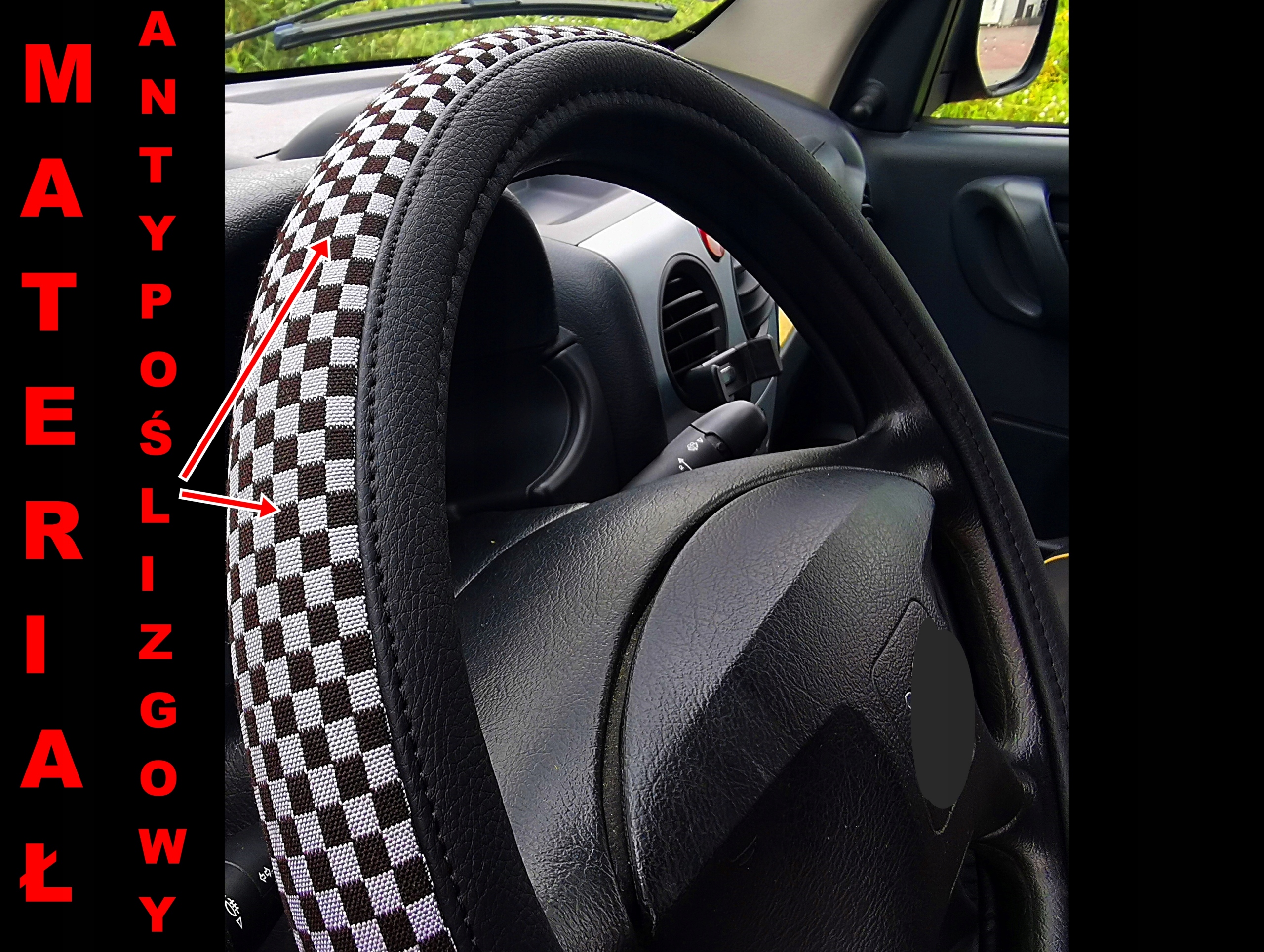 Крышка рулевого колеса (эко-кожаная черная в сочетании с не скользящими шахматными досками)
