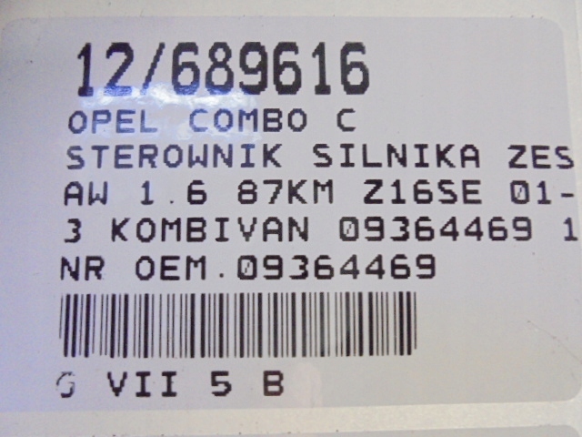OPEL COMBO C STEROWNIK SILNIKA ZESTAW 09364469 1,6 16V DNZY DELPHI