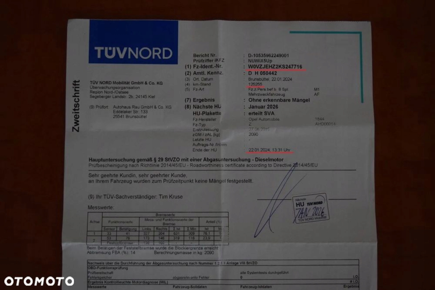 !!! Кроме того, задокументирован немецким Przegląd Tüv Nord 22.01.2024 на 125 255 км (см. Прикрепленную фотографию) !!!