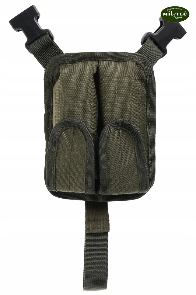 Кобура с подтяжками, подходящая для большинства типов современного огнестрельного оружия. Этот тип кобуры позволяет быстро вытащить и незаметно носить оружие. Изготовлен из прочного материала Cordura. Оснащен двумя универсальными подсумками для магазинов регулируемого размера. Удобные лямки прекрасно распределяют вес оружия и дополнительных боеприпасов, обшитые сеткой со стороны тела для увеличения циркуляции воздуха. Оснащенная гибкой системой переноски, мягкими ремнями и креплениями для плечевых ремней, кобура не ограничивает движения и адаптируется к положению пользователя. Благодаря использованию пряжек из АБС-пластика кобуру и сумку можно прикрепить к любой стороне тела как для левши, так и для правши. Он имеет систему крепления кобуры с помощью липучки или кнопок с возможностью сменных сторон. Внутренняя часть кобуры отделана мягкой подкладкой, что облегчает скрытие оружия.