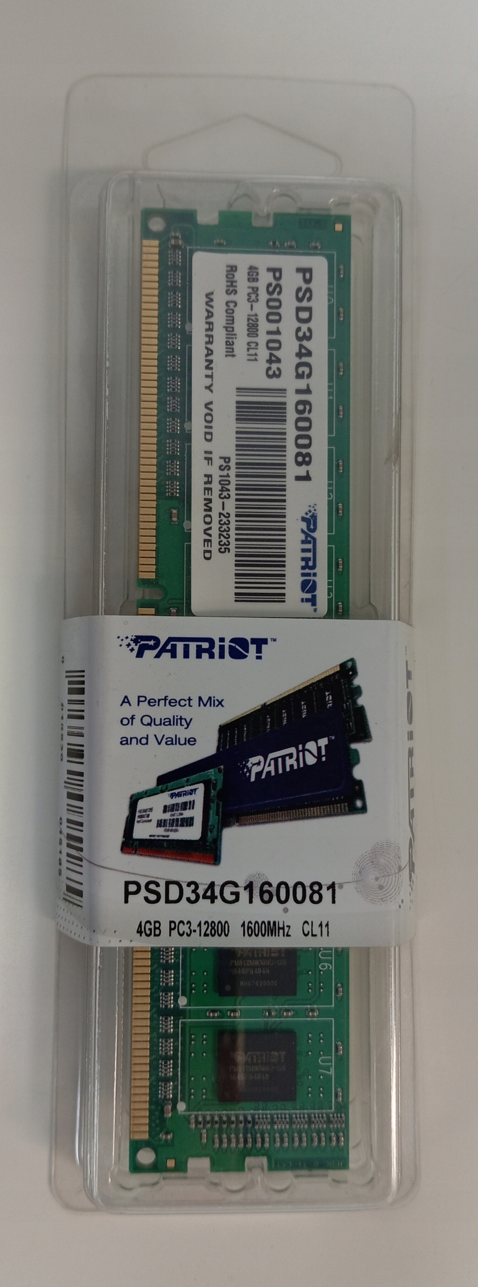 <ул>Высококачественная память SODIMM DDR3 емкостью 4 ГБ, предназначенная для портативных компьютеров, производства американской компании Patriot Memory. Он работает на частоте 1600 МГц.