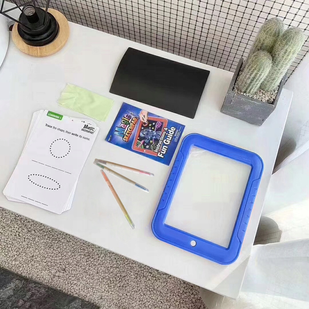Это забавный яркий блокнот для рисования, который раскрасит ваши произведения искусства. Уникальный экран кристально чистый: просто нажмите кнопку, и ваши рисунки засияют множеством световых эффектов.